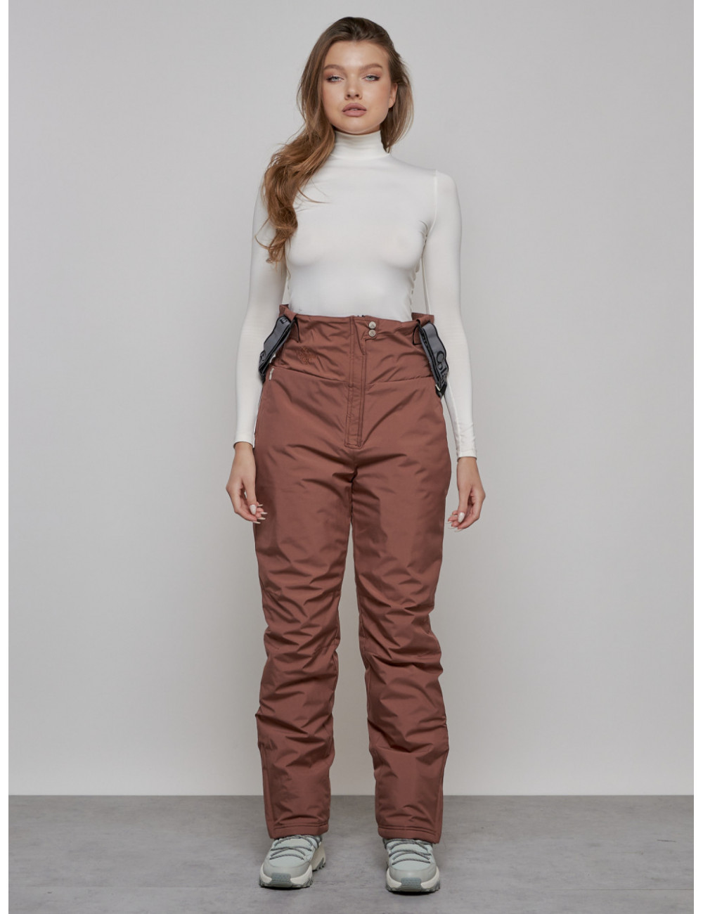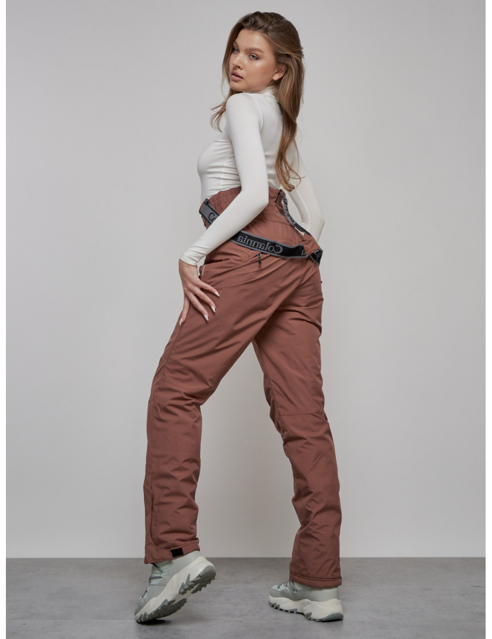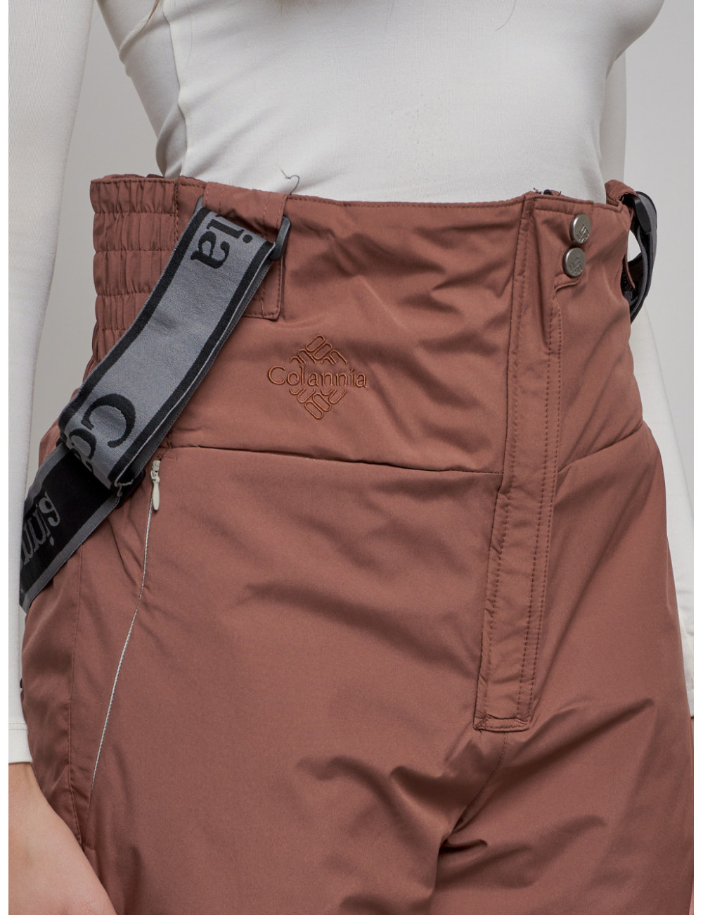 Наслаждайтесь зимними видами спорта в комфорте и тепле с нашими горнолыжными брюками-полукомбинезоном! Доставка по Москве и Московской области Женский зимний полукомбинезон с высокой посадкой коричневого цвета, брюки для зимних прогулок.