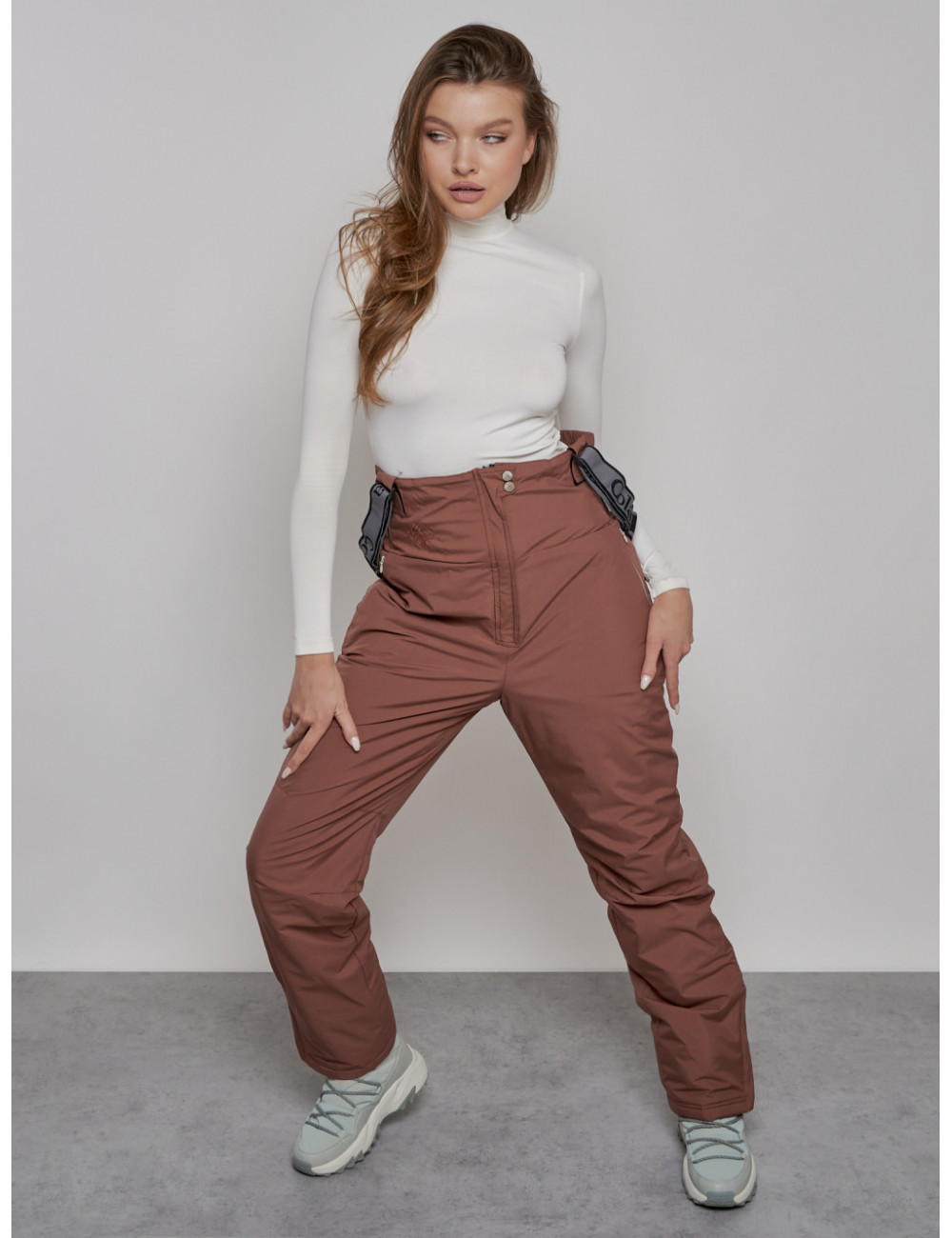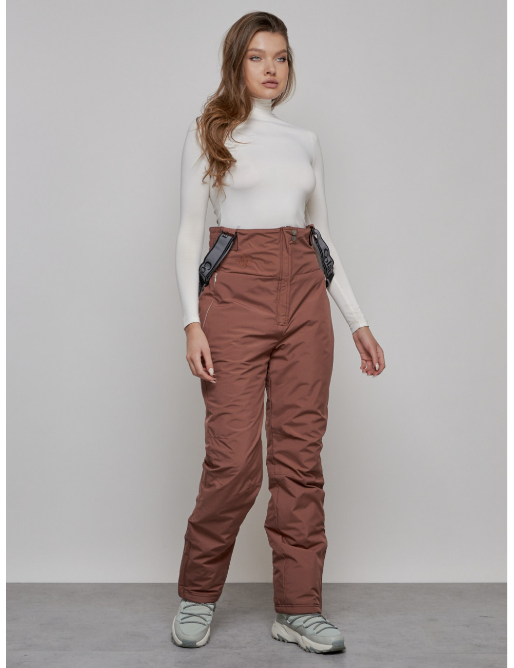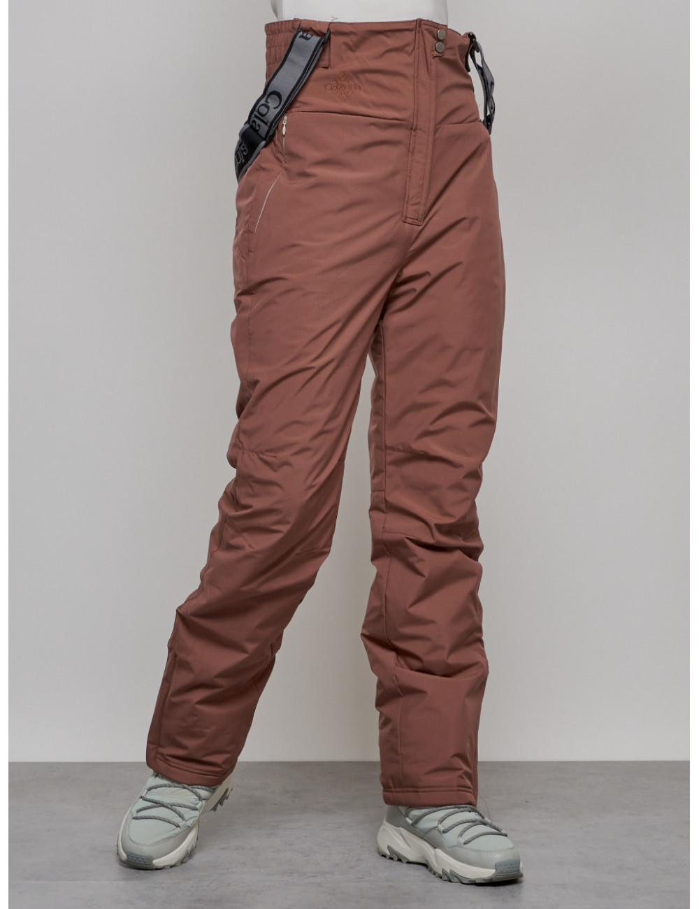 Наслаждайтесь зимними видами спорта в комфорте и тепле с нашими горнолыжными брюками-полукомбинезоном! Доставка по Москве и Московской области Женский зимний полукомбинезон с высокой посадкой коричневого цвета, брюки для зимних прогулок.
