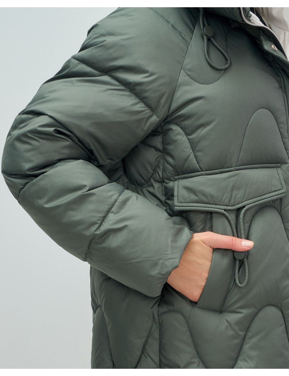 Дополнительные фиксаторы: фиксаторы на капюшоне, по низу куртки и около карманов обеспечивают дополнительную защиту и комфорт, позволяя регулировать посадку и сохранять тепло.