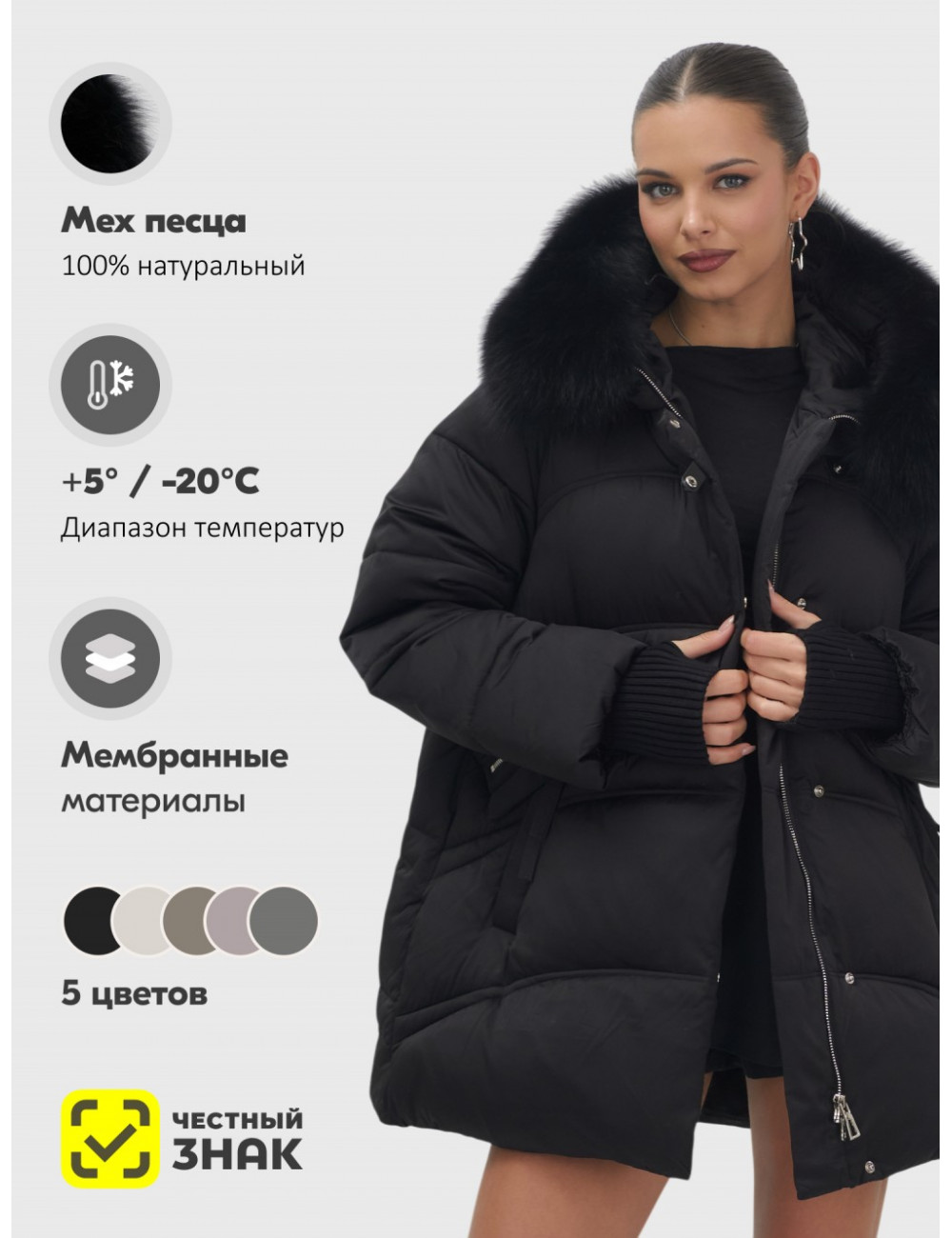 - Температурный режим: комфорт до −20 °C.