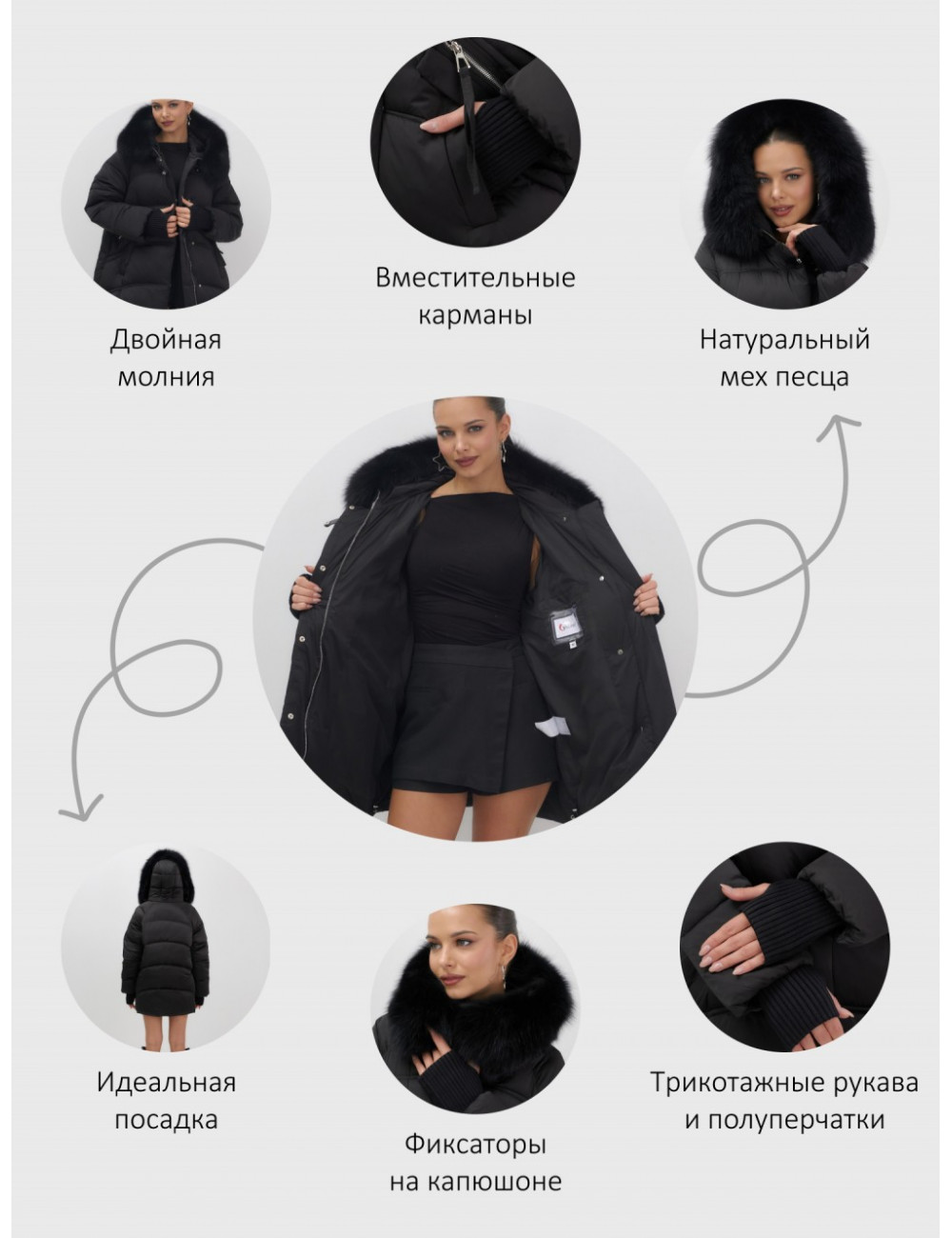 Сочетайте пуховик с джинсами, брюками или юбками для создания стильного образа. Натуральный мех песца добавит изысканности и утончённости вашему наряду. Доставка по Москве и Московской области Пуховик женский зимний с мехом и капюшоном, чёрный тренд.
