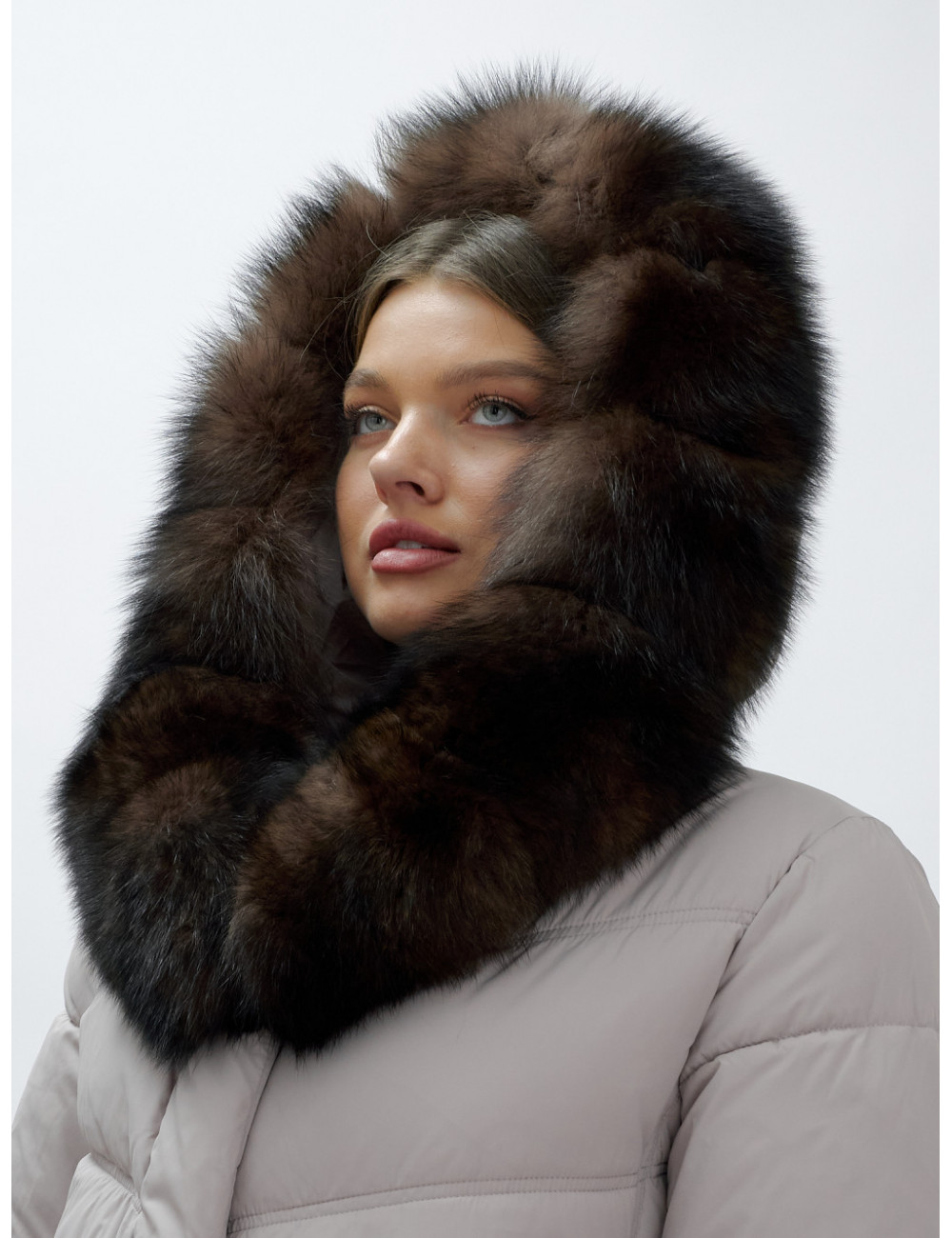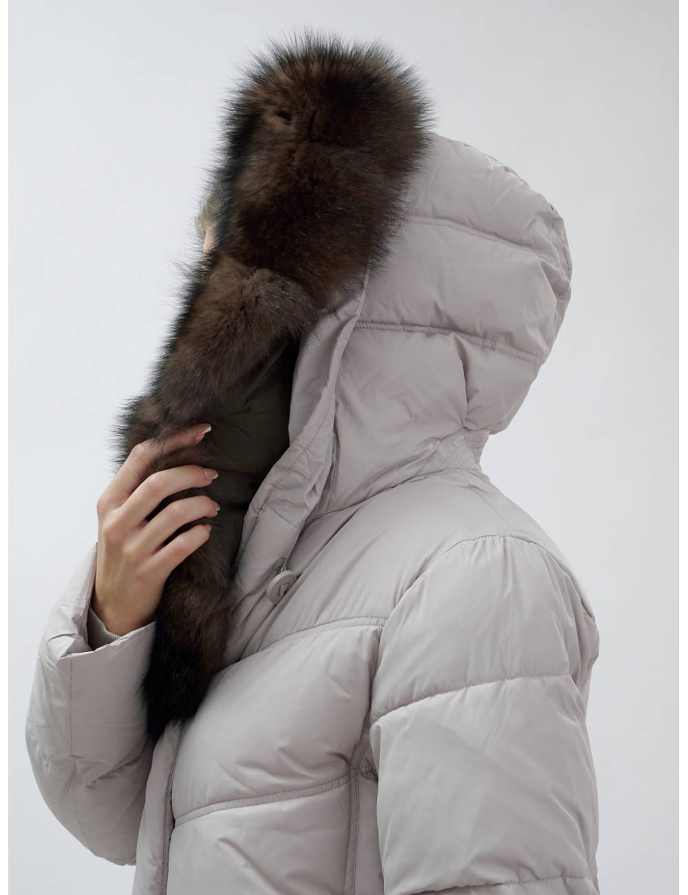- Натуральный мех песца. Роскошная отделка из натурального меха придаёт пуховику изысканный вид и добавляет тепла в самые морозные дни. Съёмная опушка придаёт изящества образу и смотрится благородно.