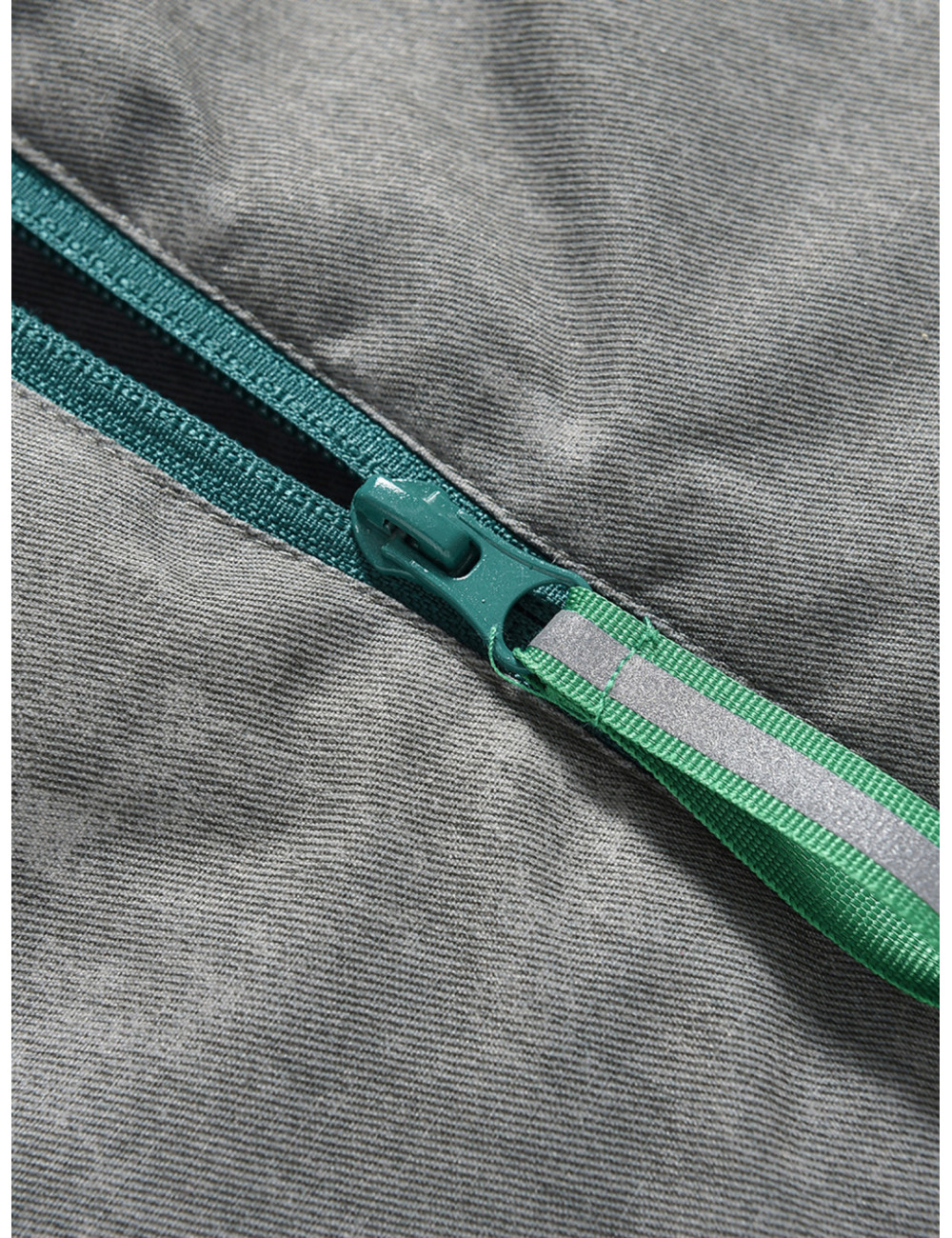Регулируемые рукава с полуперчатками защищают от холодного ветра и снега, а защита подбородка предотвращает натирание при застёгивании молнии.