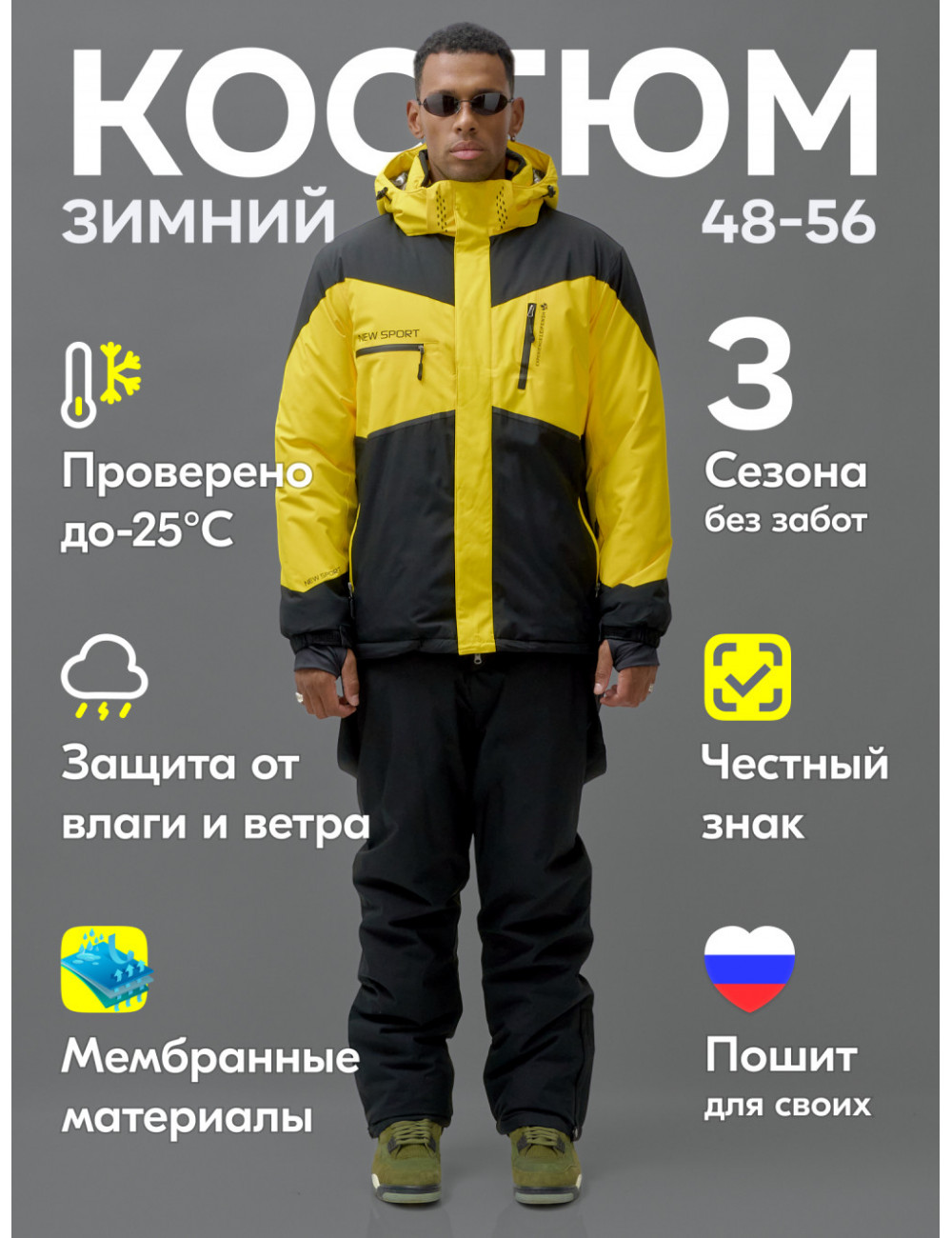 Сделайте свои зимние приключения комфортными и стильными с зимним горнолыжным мужским костюмом от Ketsi! Ваш активный образ жизни заслуживает лучшего. Будьте здоровы, полны энергии и готовы к новым свершениям! Доставка по Москве и Московской области Мужской горнолыжный костюм зимний жёлтый для зимних видов спорта