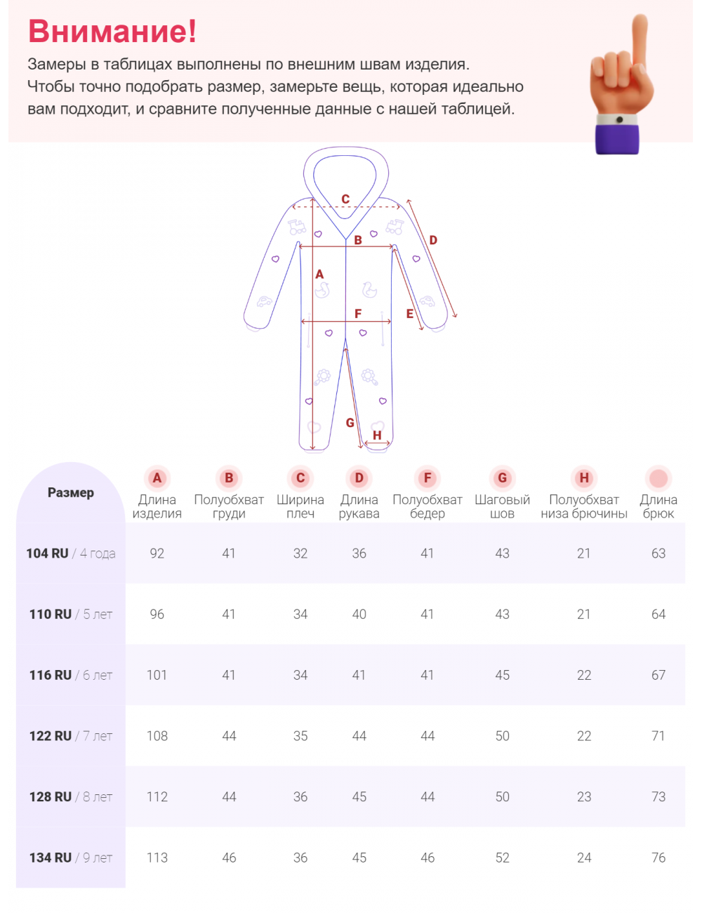 Ответ: комбинезон представлен в различных размерах, подходящих для детей от 4 до 9 лет.