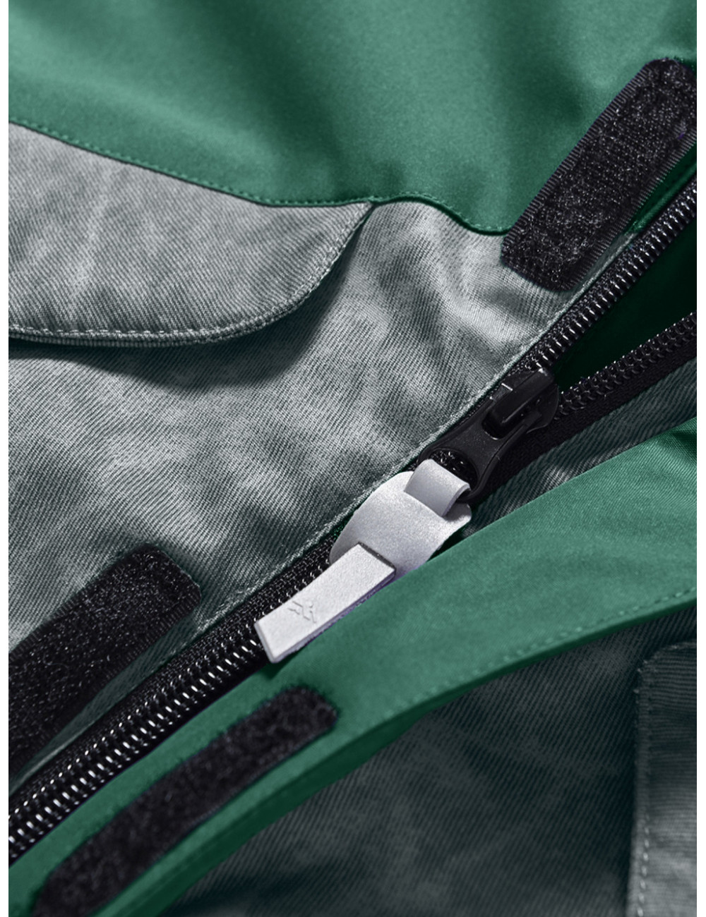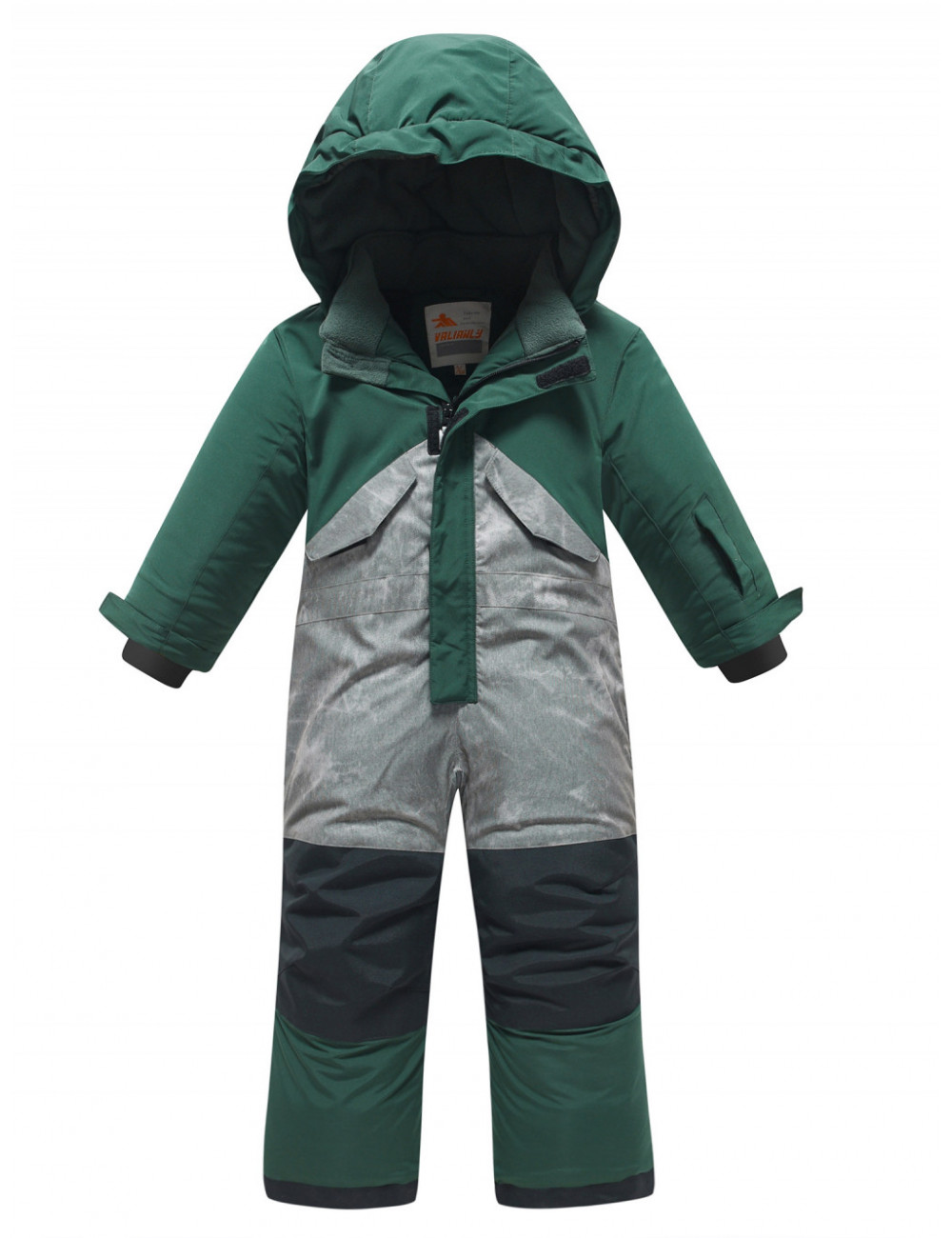 Съёмный утеплённый капюшон защитит от пронизывающего ветра, а трикотажные манжеты и снегозащитные гамаши плотно облегают, не позволяя снегу пробраться внутрь рукавов. Регулируемая посадка с утягивающими фиксаторами на липучке в талии и на рукавах даёт возможность адаптировать комбинезон под любую фигуру.