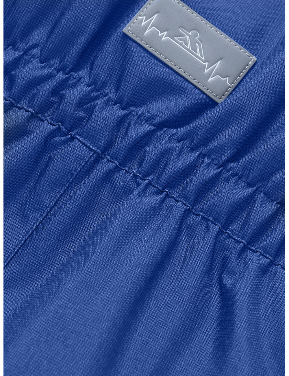 Комбинезон оснащён накладными карманами, светоотражающими элементами, ветрозащитной планкой, съёмным утеплённым флисовым капюшоном, утеплённым флисовым воротником, силиконовыми штрипками для фиксации на обуви и эластичными манжетами.