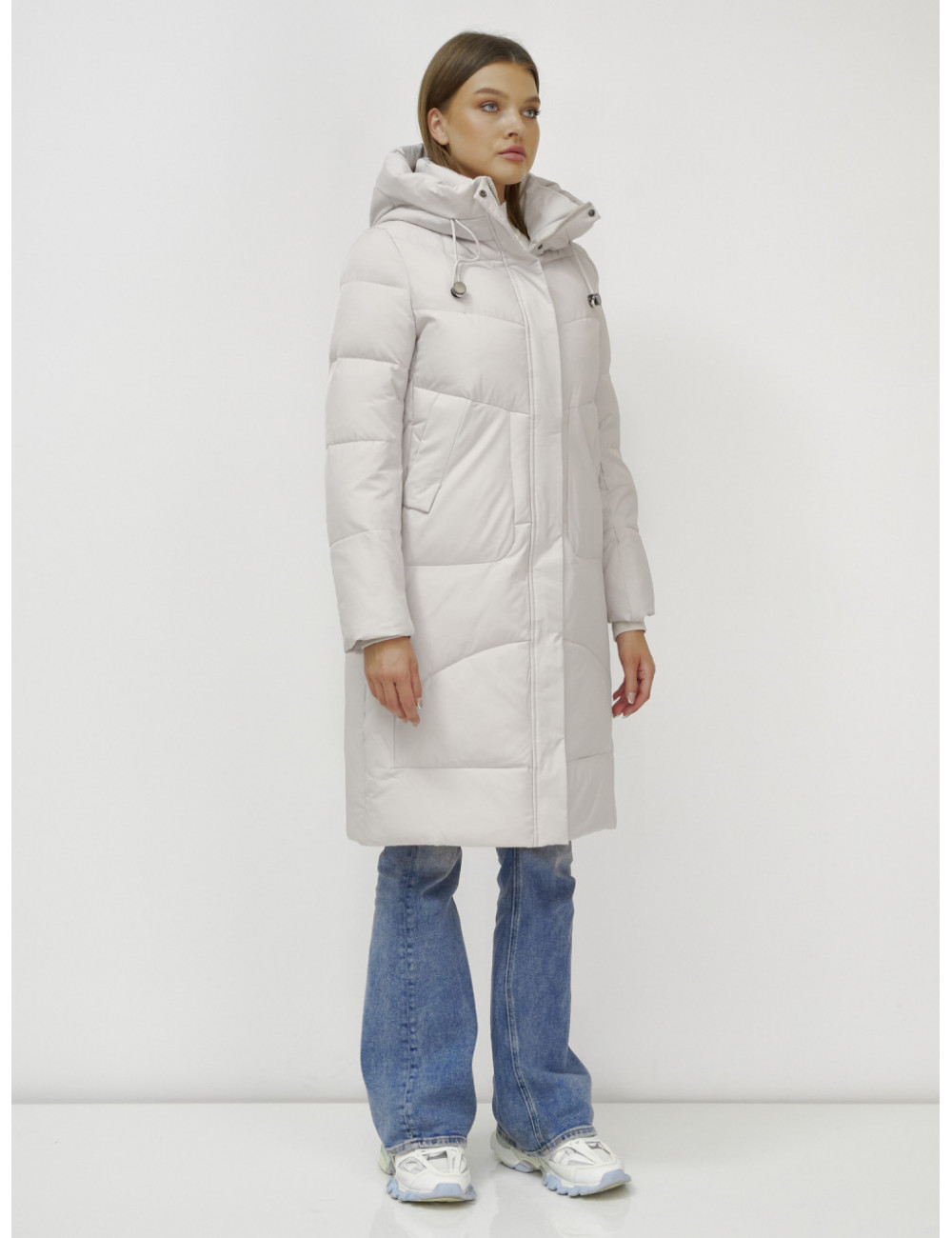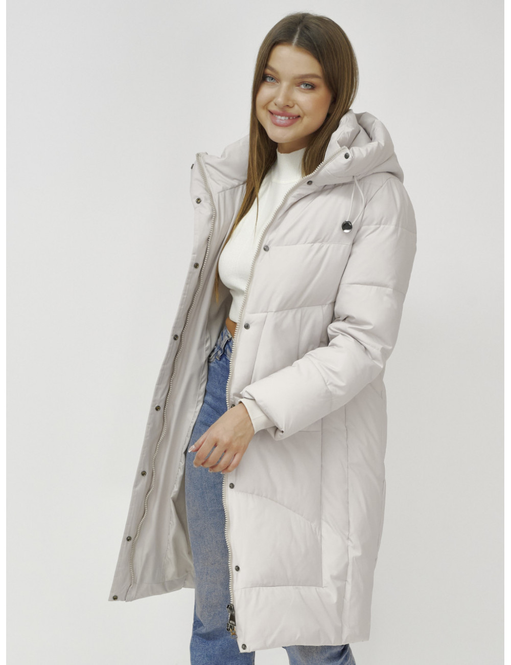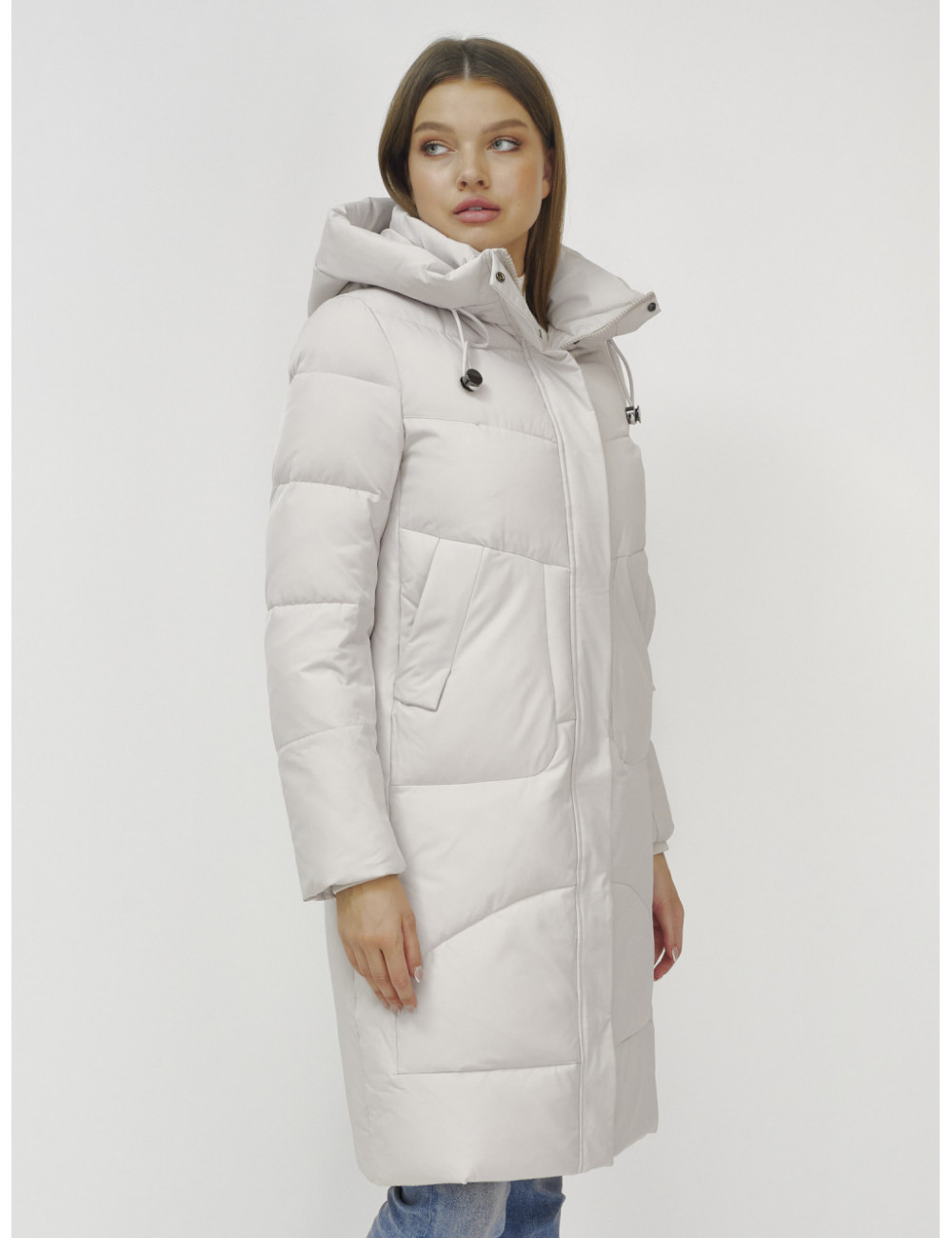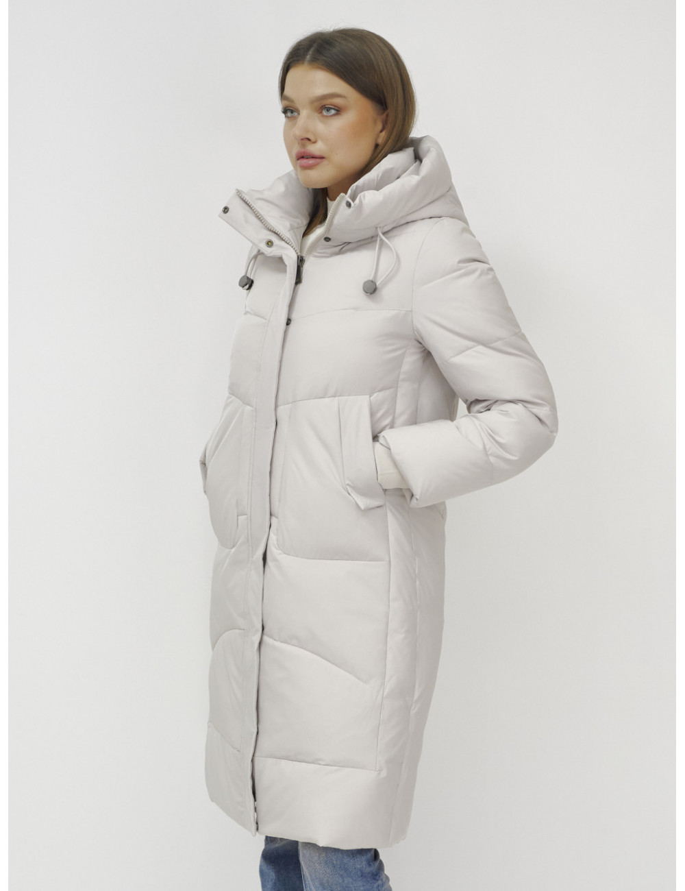 В пуховике есть воротник-стойка, несъёмный капюшон с фиксаторами, ветрозащитная планка на кнопках, двойной замок, прорезные боковые карманы на кнопках, утеплённые флисом, внутренний карман и трикотажные манжеты. Доставка по Москве и Московской области Женский зимний пуховик с капюшоном, удлинённый, бежевый.