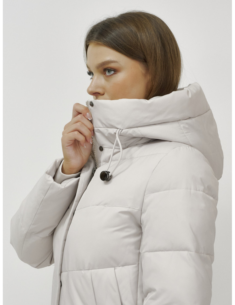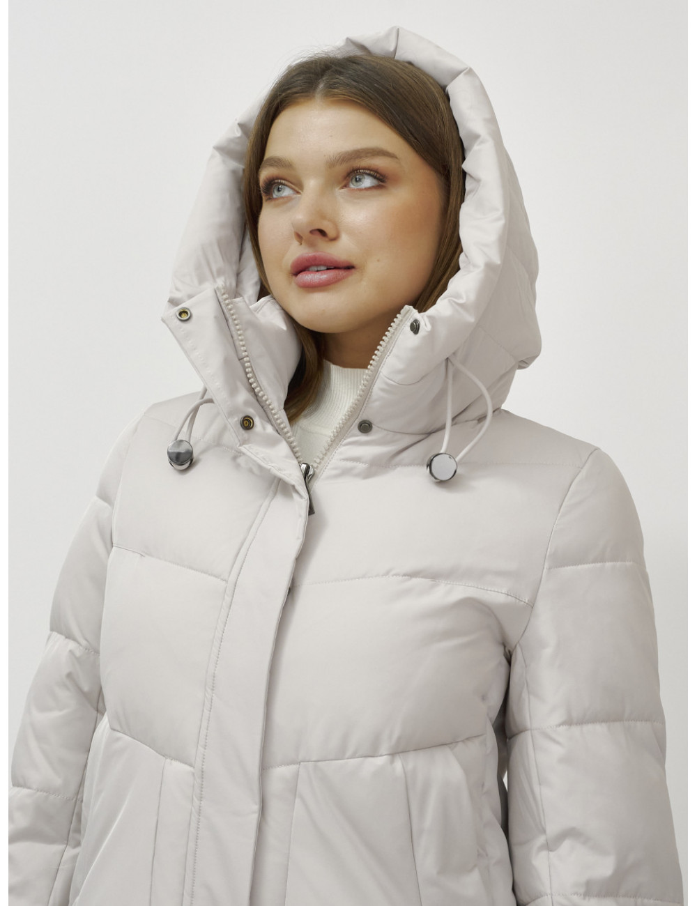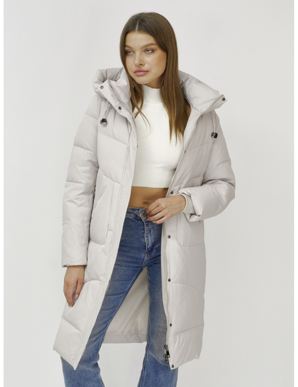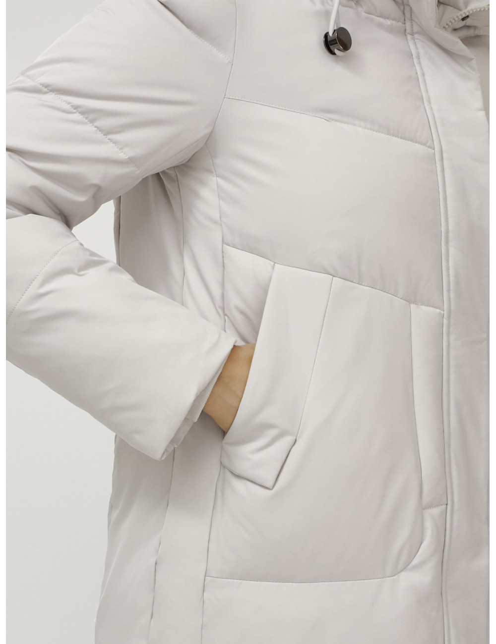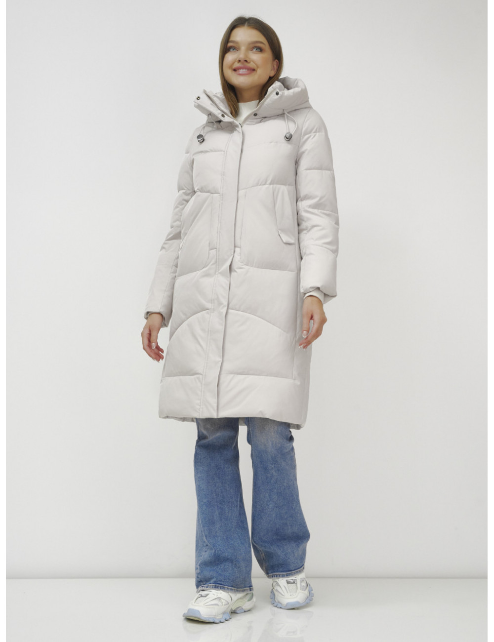 В пуховике есть воротник-стойка, несъёмный капюшон с фиксаторами, ветрозащитная планка на кнопках, двойной замок, прорезные боковые карманы на кнопках, утеплённые флисом, внутренний карман и трикотажные манжеты. Доставка по Москве и Московской области Женский зимний пуховик с капюшоном, удлинённый, бежевый.