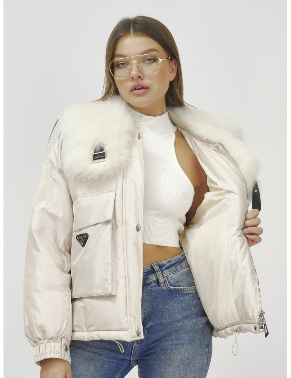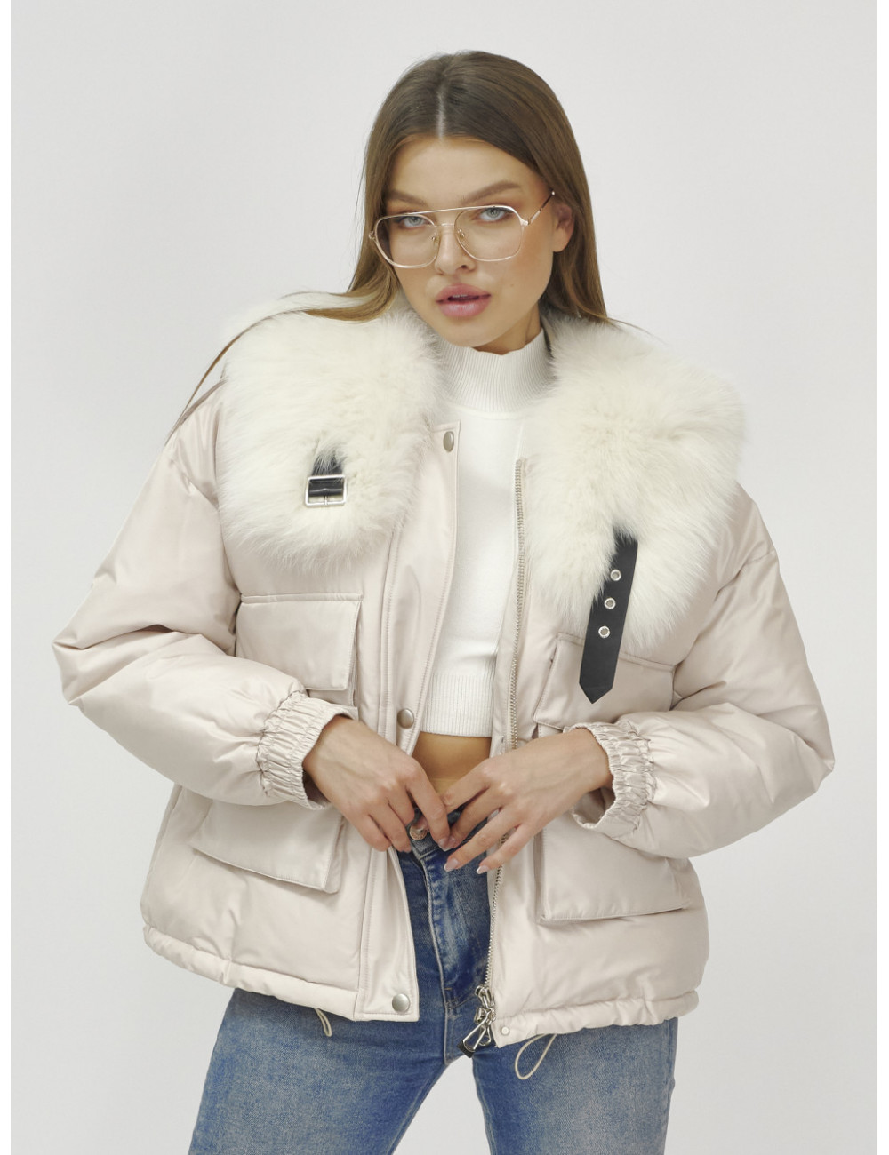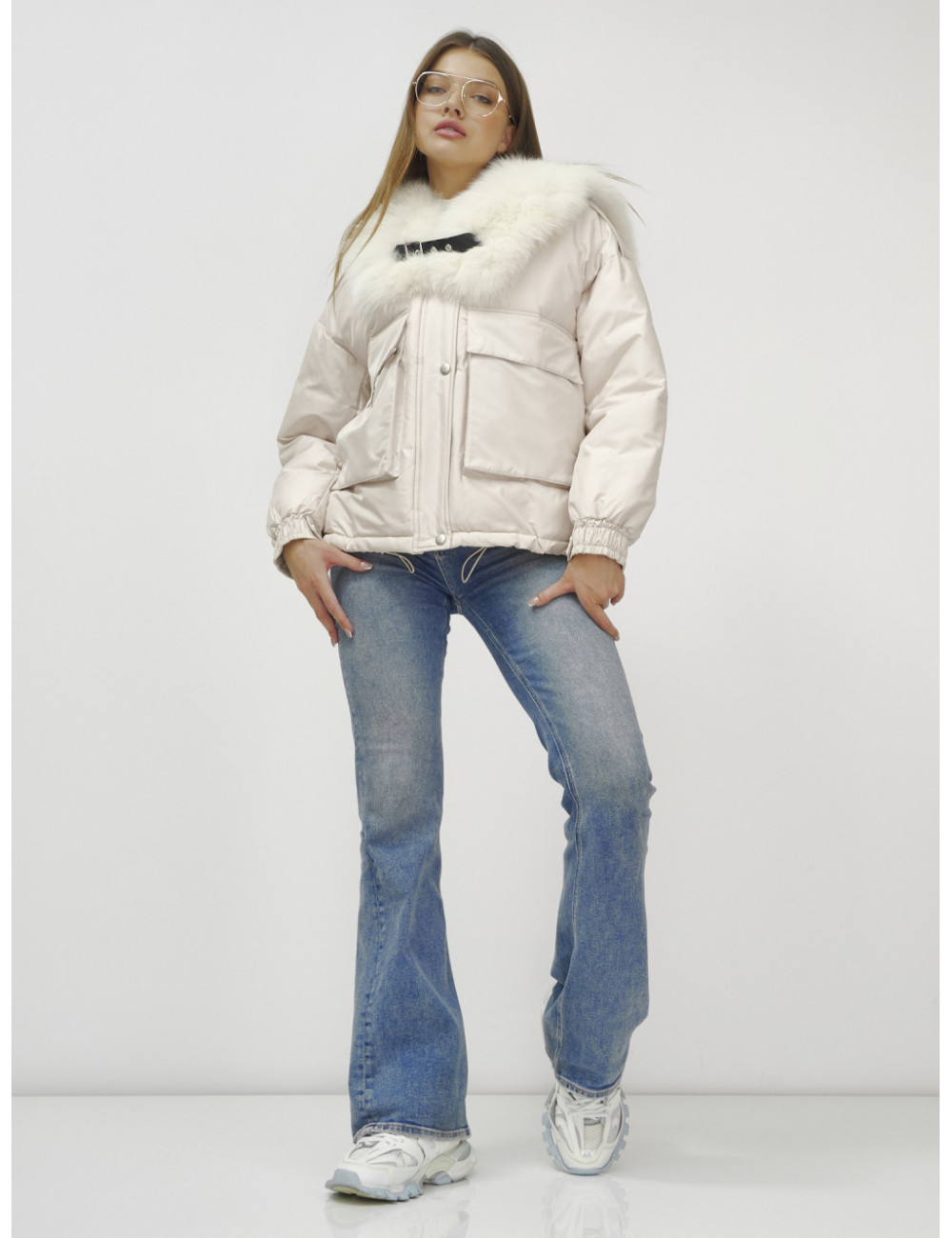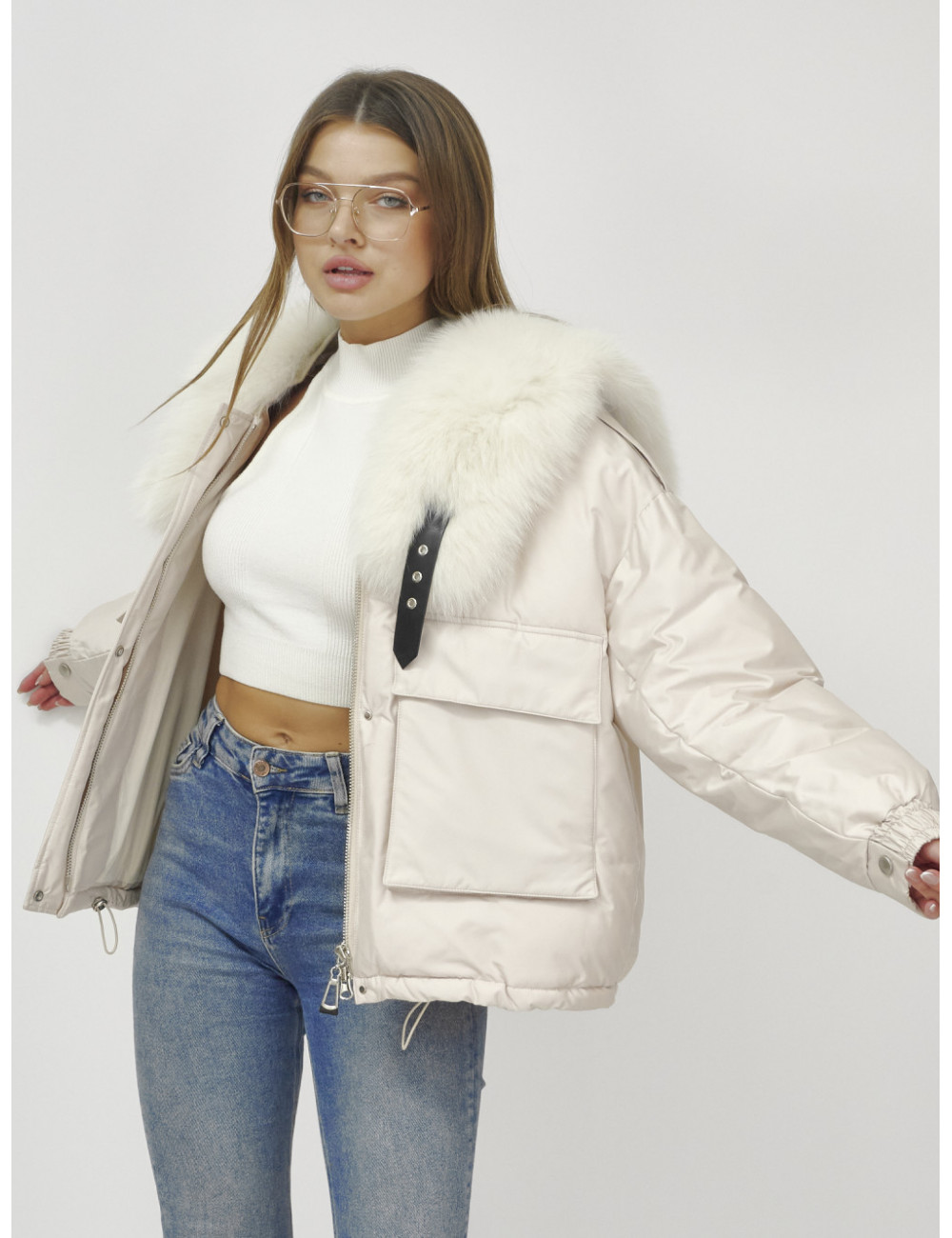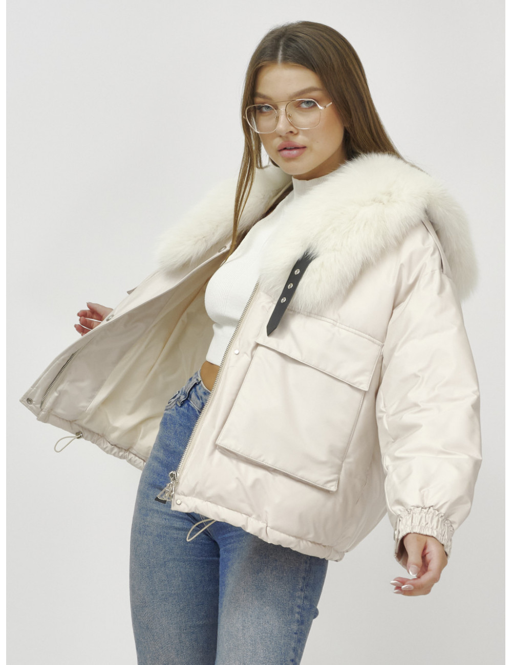 Не упустите возможность подчеркнуть свою индивидуальность и оставаться в тепле этой зимой с курткой от Ketsi! Доставка по Москве и Московской области Бомбер-куртка с мехом песца премиум-класса, бежевый, для женщин.