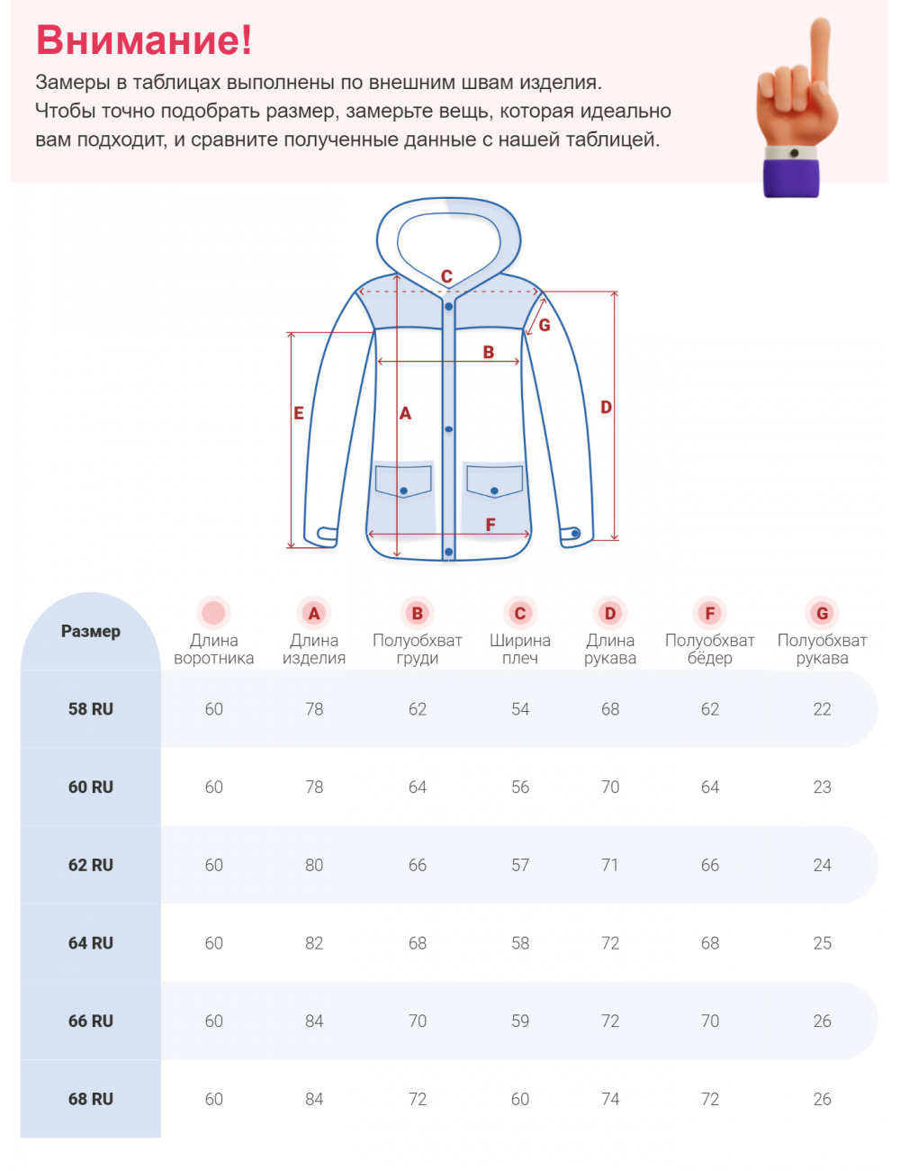 | Фиксаторы | На капюшоне/на рукавах/по низу |