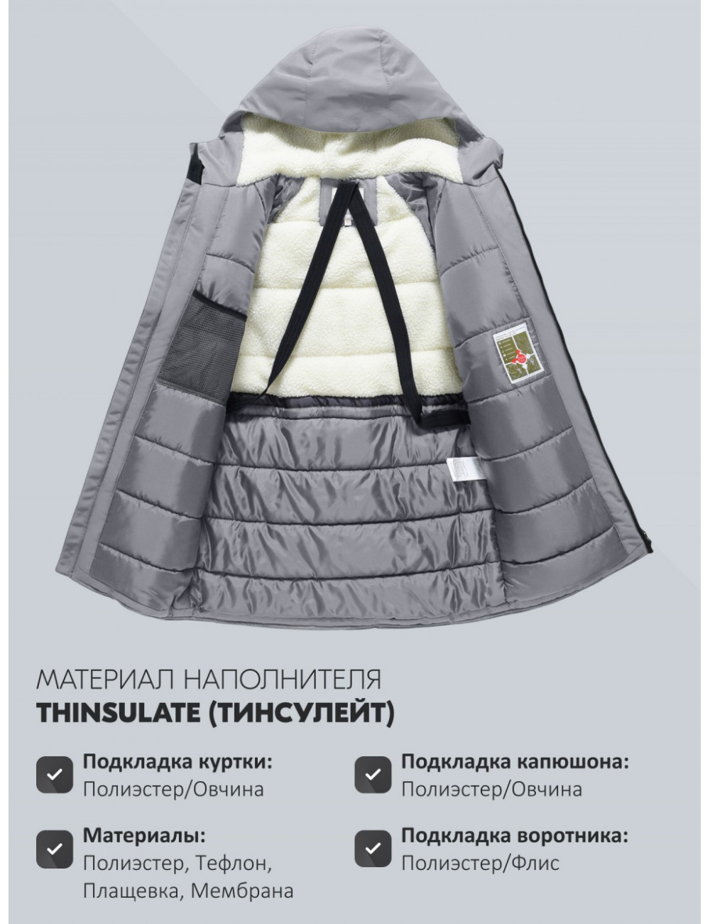 | Материал подкладки куртки | Полиэстер/Овчина |