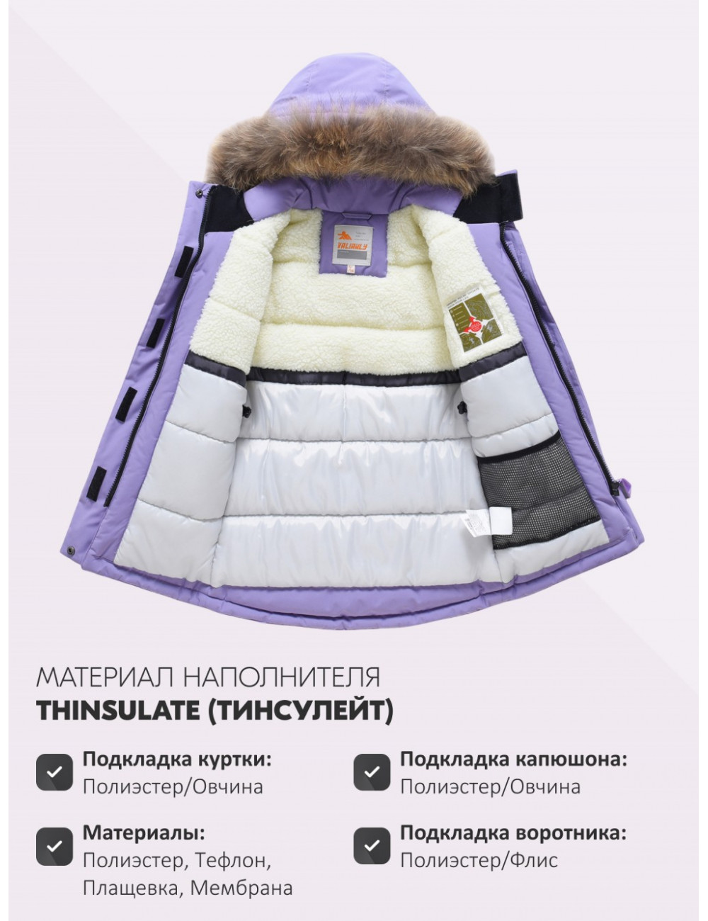 | Материал подкладки куртки | Полиэстер/Овчина |