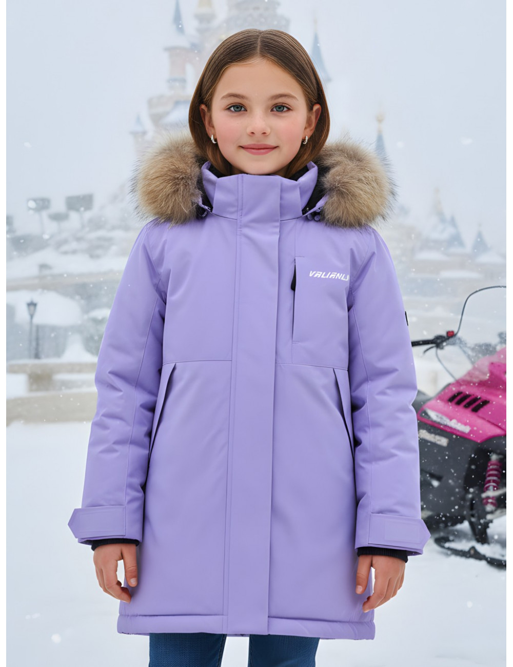 Эта парка идеально подходит для зимних видов спорта, таких как катание на лыжах и сноуборде. Она обеспечит комфорт и тепло во время активного отдыха на свежем воздухе. Доставка по Москве и Московской области Зимняя парка для девочки с капюшоном и мехом, фиолетовая, подростковая