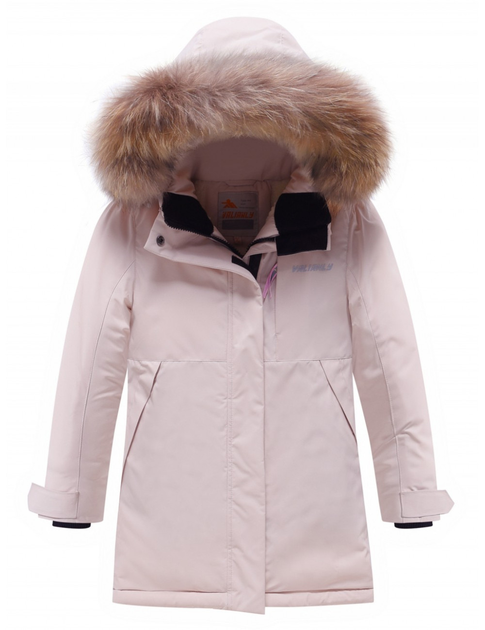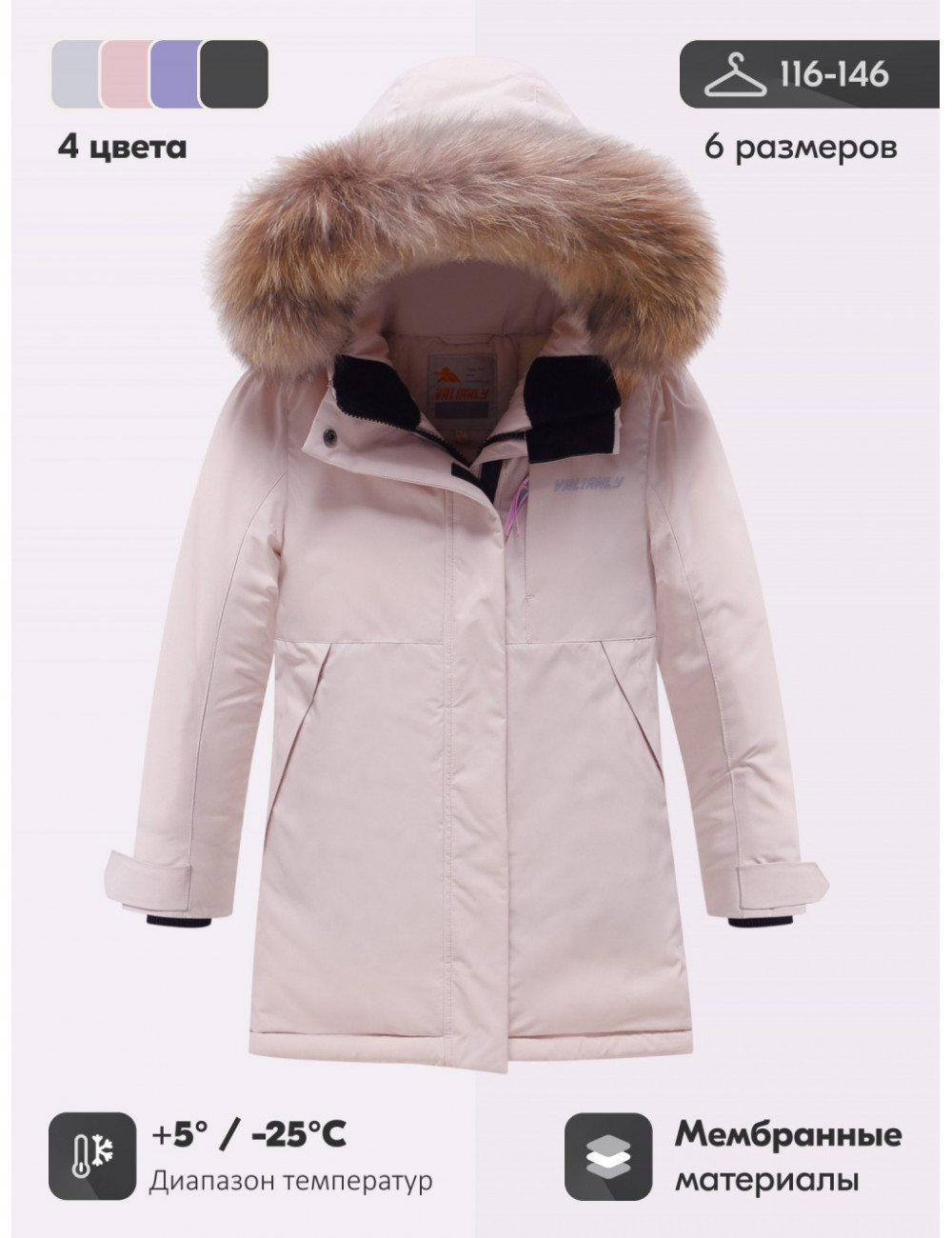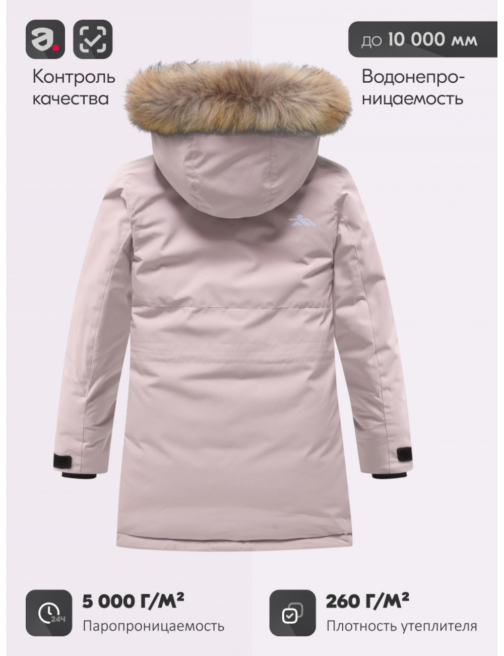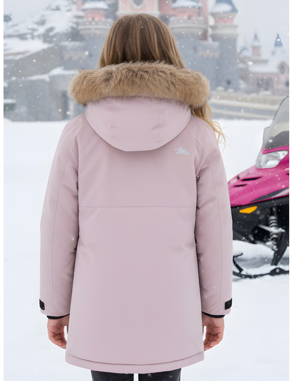 Стильная и тёплая зимняя парка от Ketsi станет отличным выбором для активных прогулок, школы и отдыха на свежем воздухе. Модель выполнена в нежном розовом цвете и дополнена объёмным капюшоном с роскошным мехом, который защищает от ветра и снега.