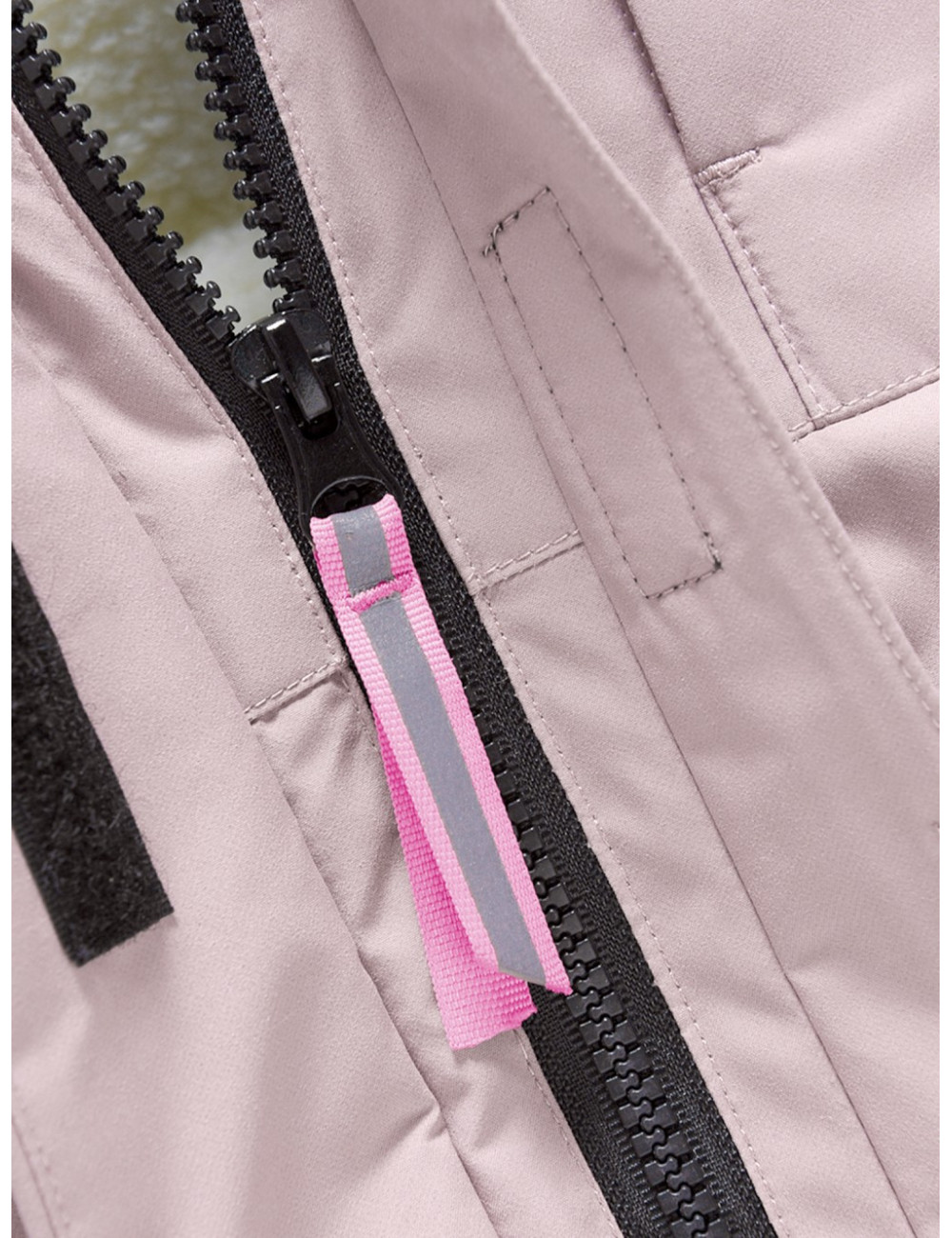 Регулируемая утяжка внутри позволяет подогнать парку по фигуре, обеспечивая идеальную посадку. Светоотражающие элементы делают ребёнка более заметным в тёмное время суток, что повышает его безопасность.