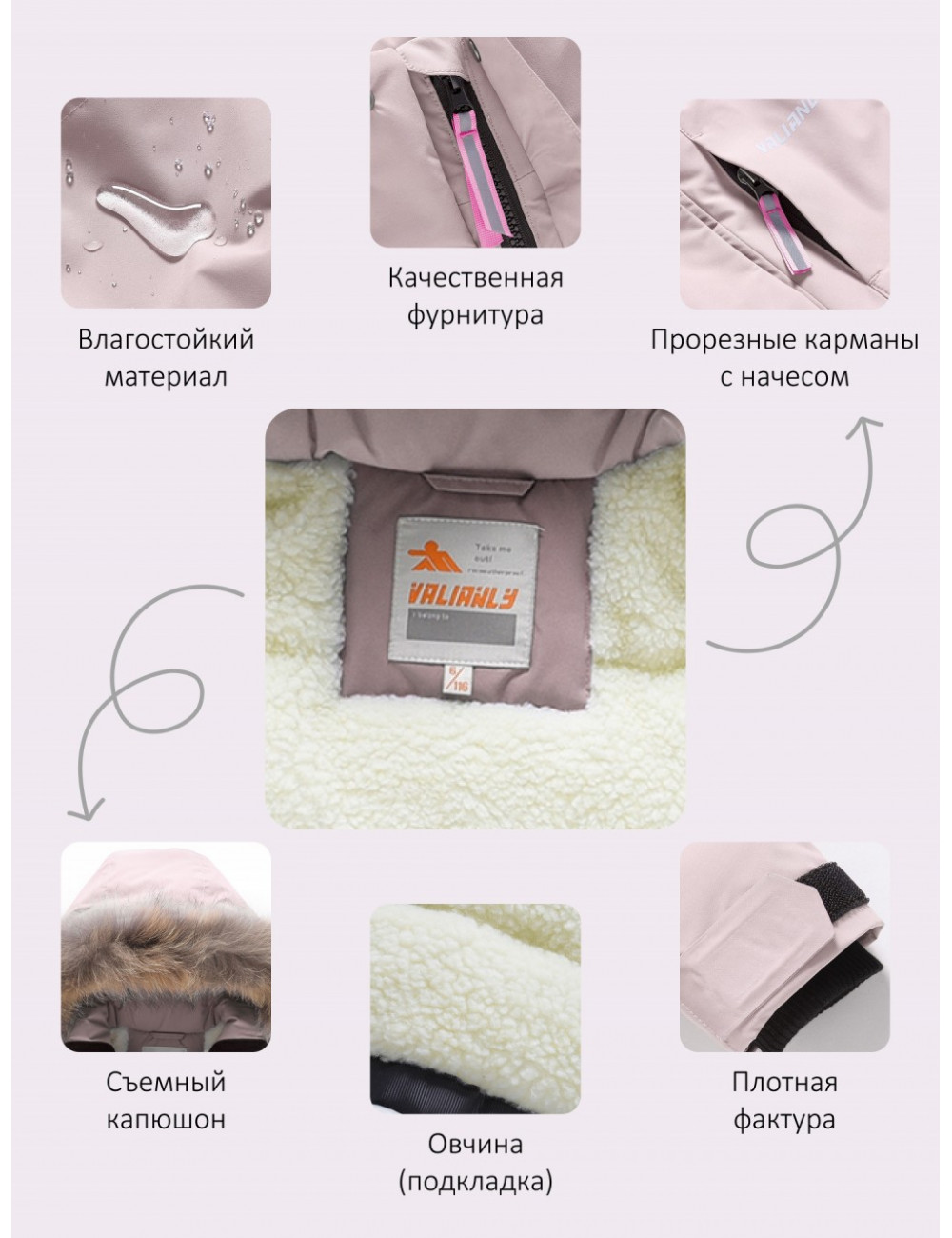 - Стильный дизайн. Нежный розовый цвет и стильный капюшон делают парку популярной среди девочек.