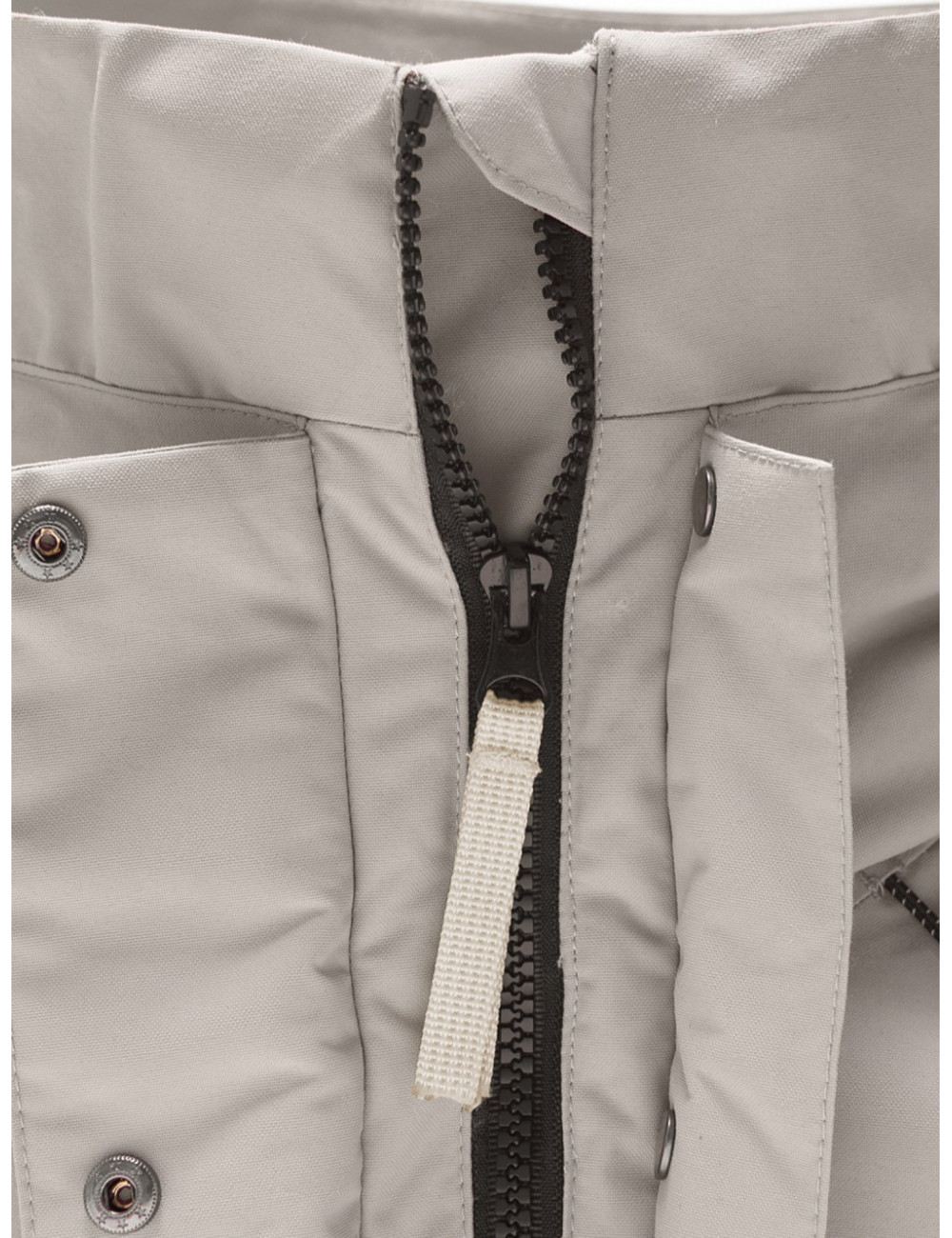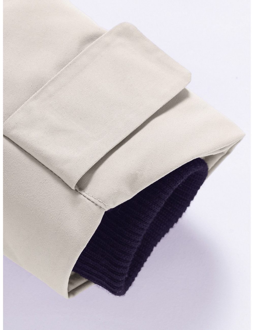 Особенность этой парки — регулируемая посадка. Фиксаторы по низу, на капюшоне и по центру (в области талии) позволяют настроить силуэт — сделать его более приталенным или оставить прямым. Фиксаторы на рукавах (паты с кнопкой) и трикотажные манжеты удерживают тепло и не дают продувать.