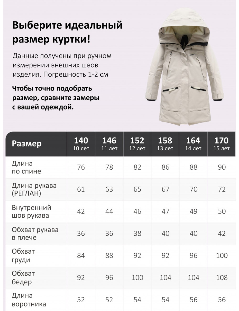 - Длина куртки (от верхней точки плеча до нижнего края куртки).