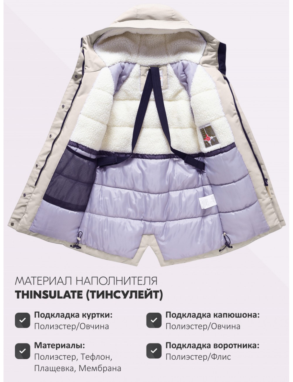 | Материал подкладки куртки | Полиэстер/Овчина |
