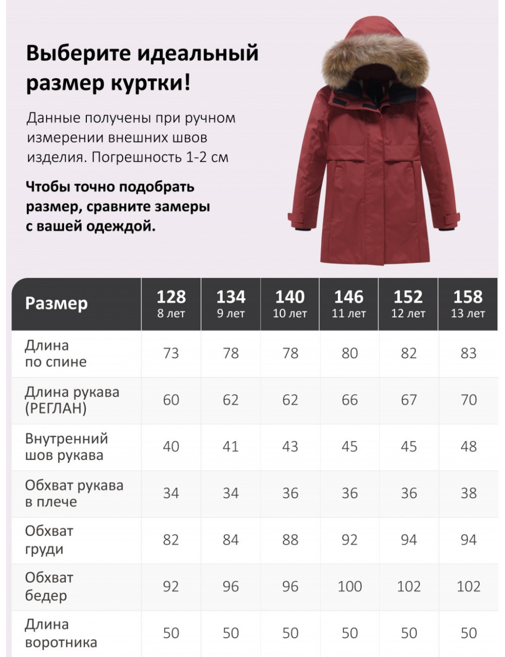 | Декоративные элементы | Манжеты, Мех, Карманы, Съемная опушка |