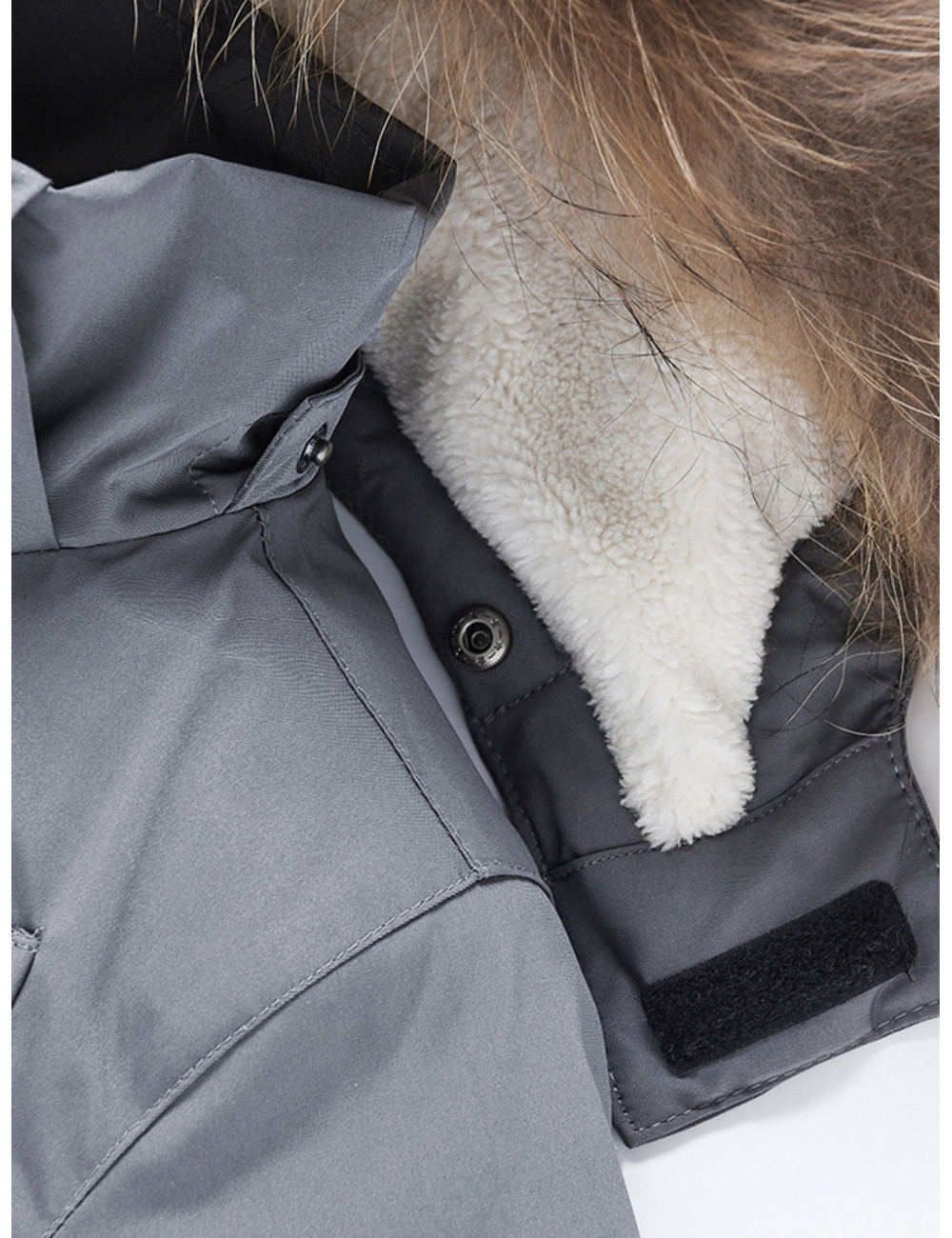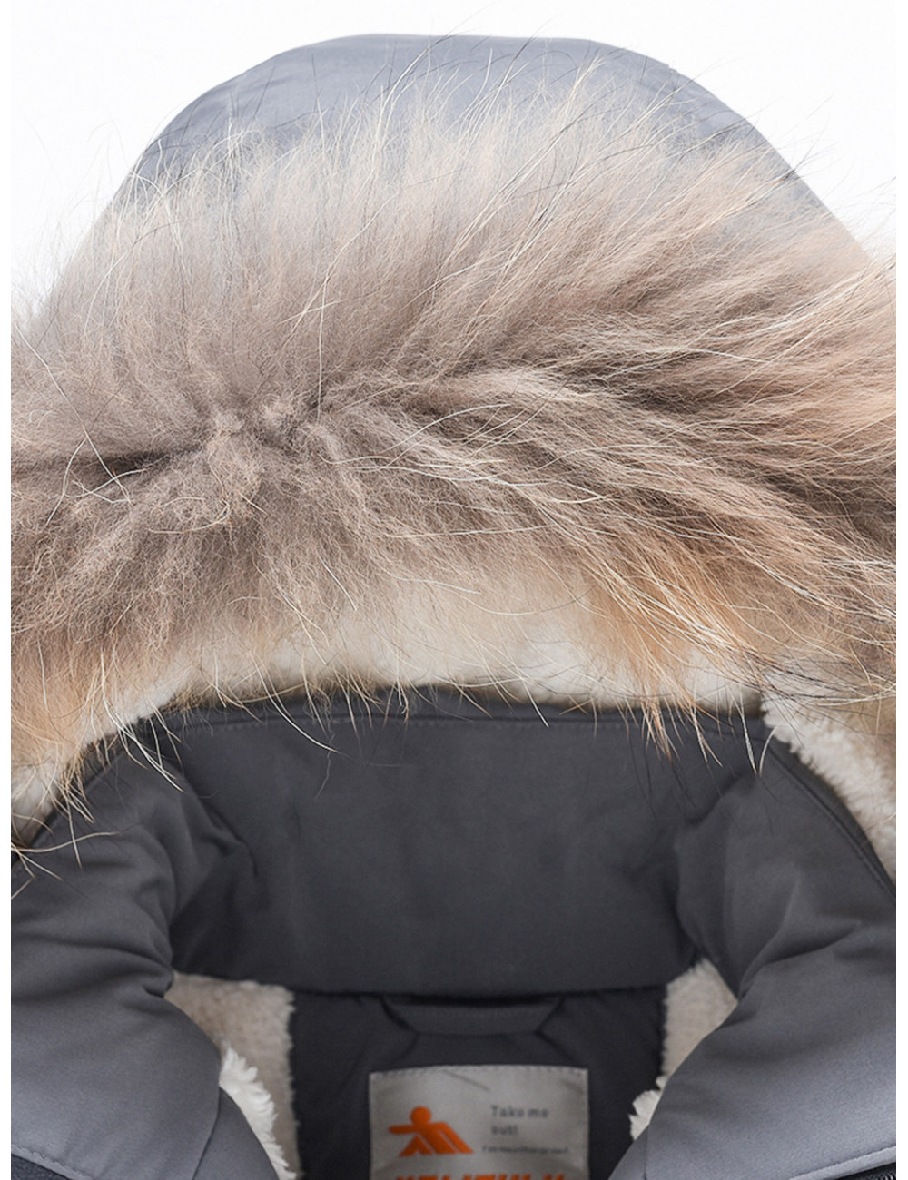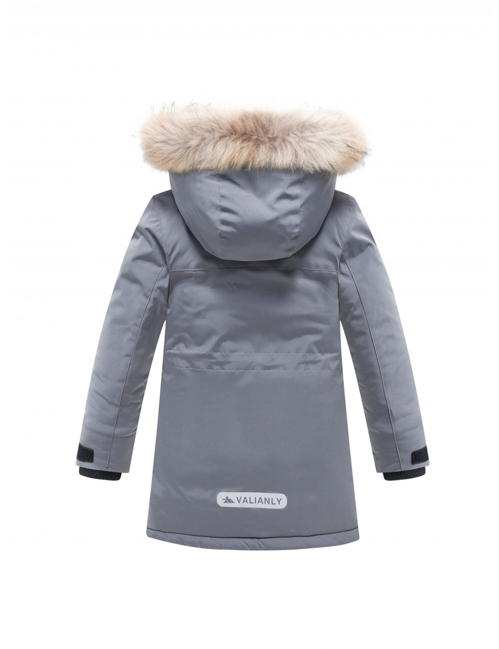 - Глубокий капюшон на кнопках с меховой отделкой защищает голову и шею от холода и ветра.