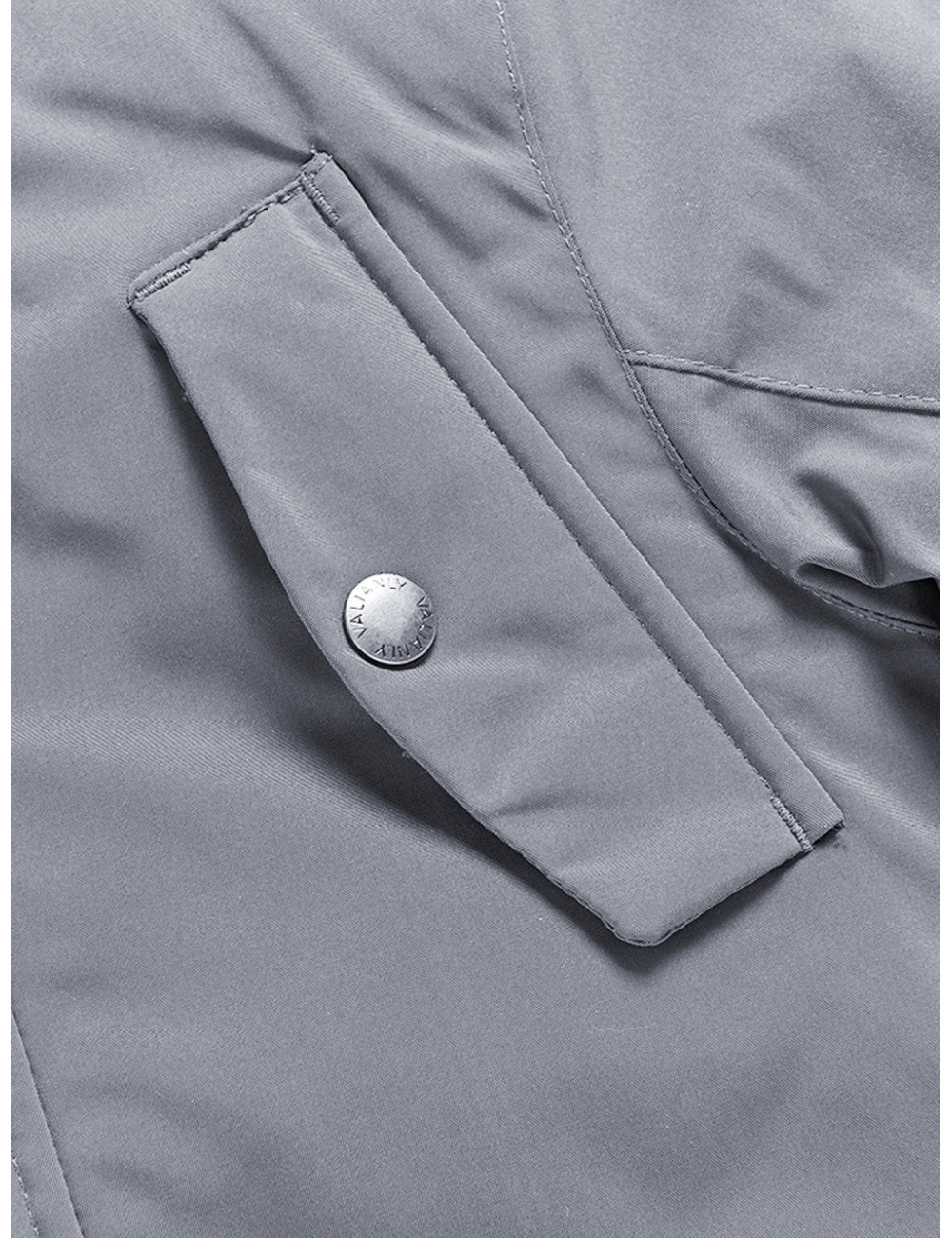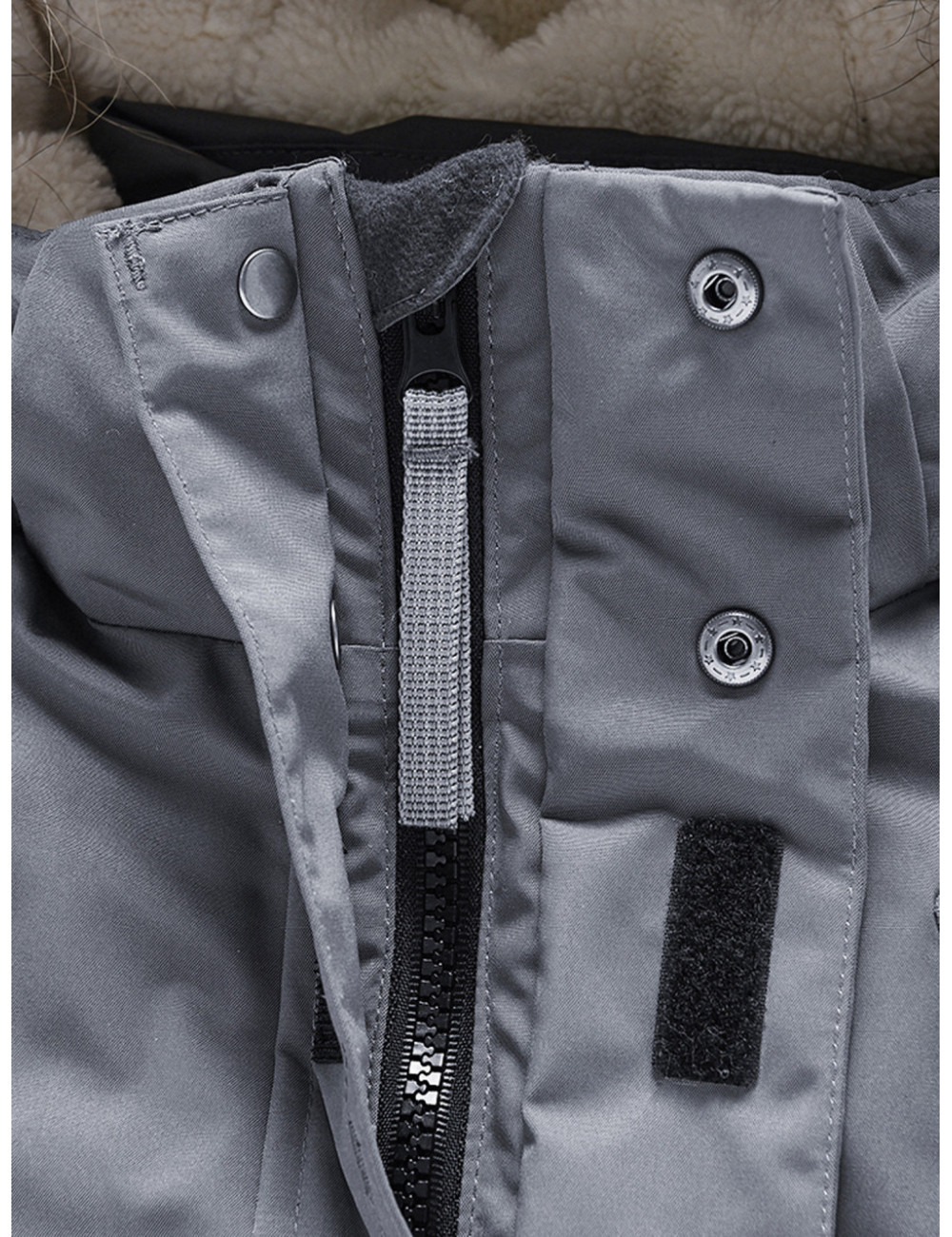 - Ветрозащитная планка на кнопках и липучках обеспечивает дополнительную защиту от холодного воздуха.