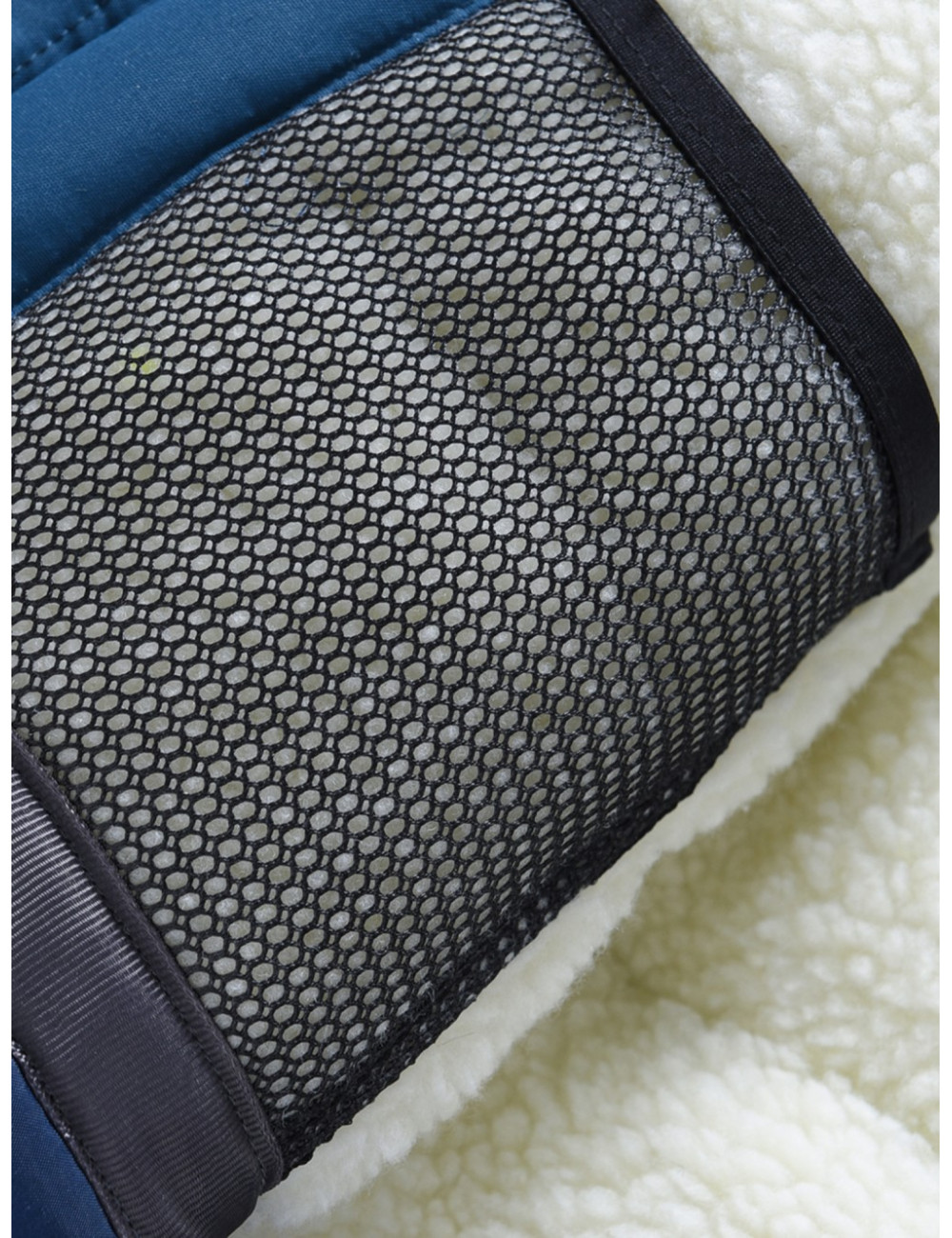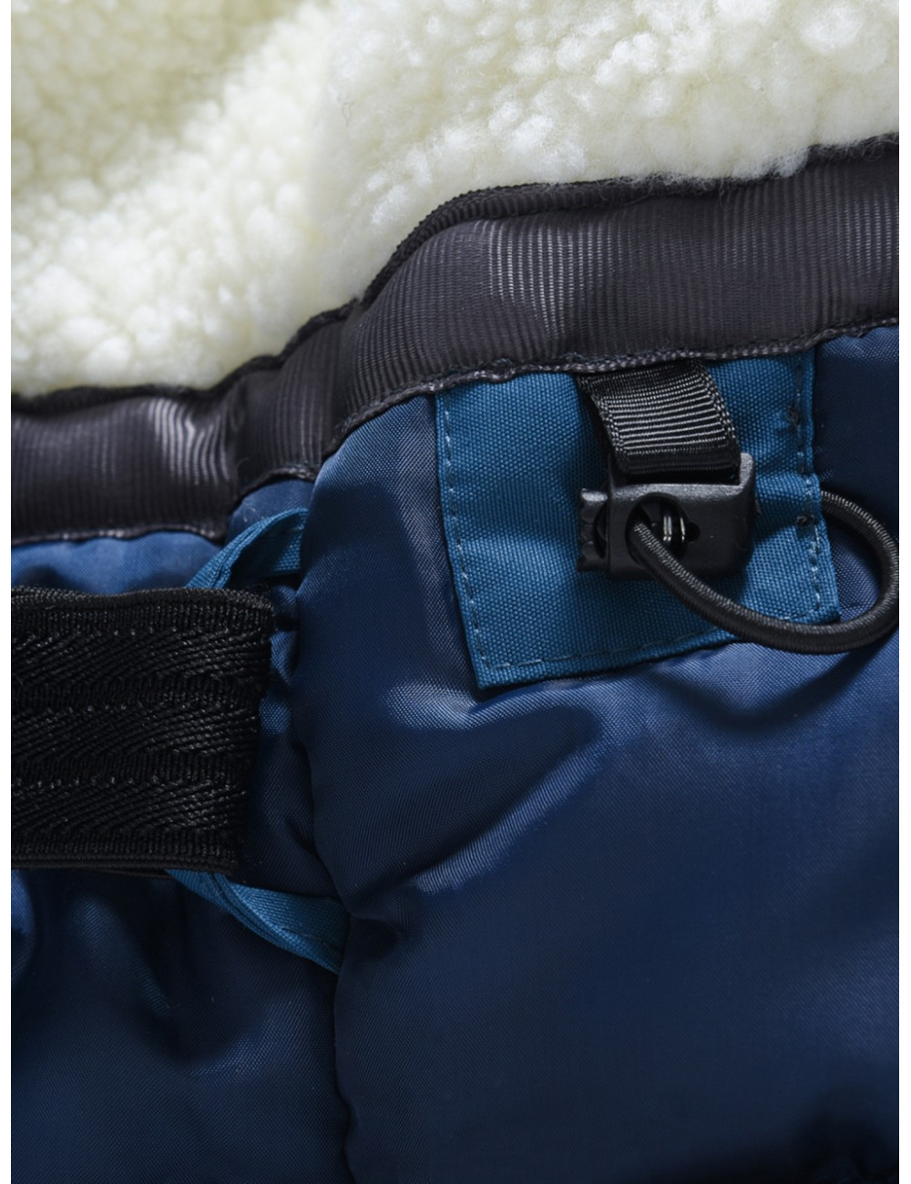 Фиксаторы по низу, на капюшоне и по центру (в области талии) позволяют подстроить силуэт и защитить от продувания. Фиксаторы на рукавах (паты с липучкой) и трикотажные манжеты удерживают тепло внутри.