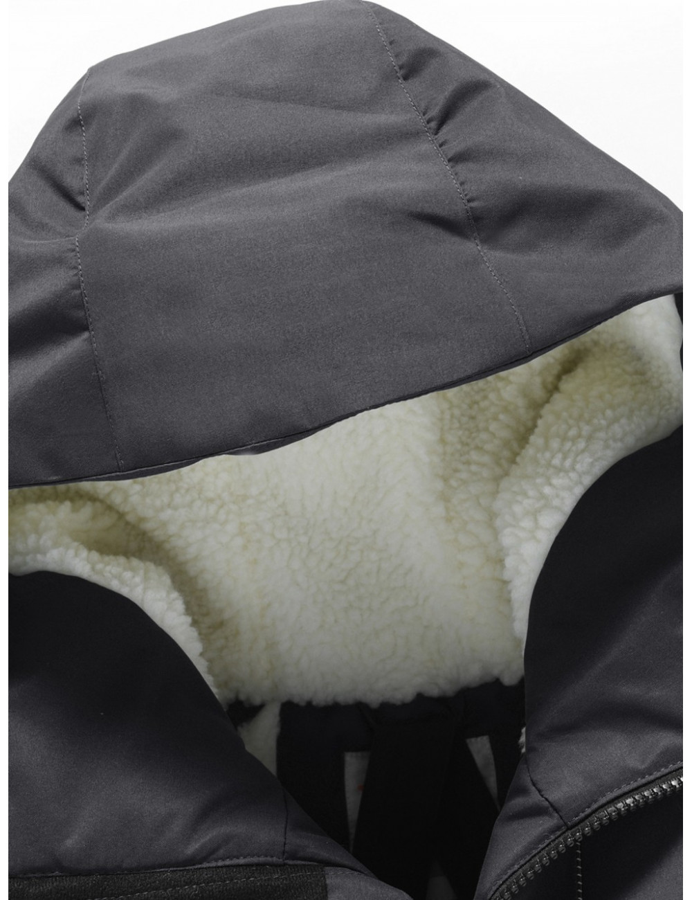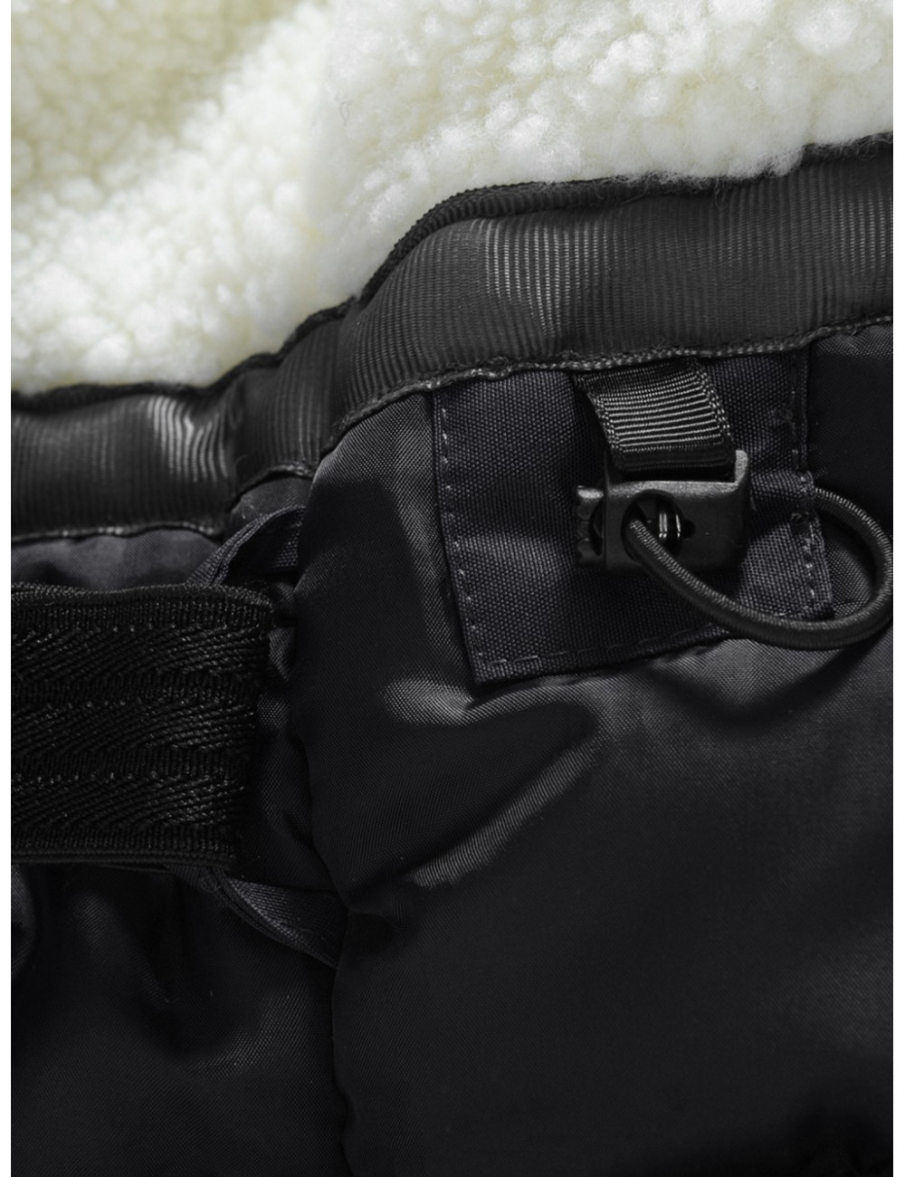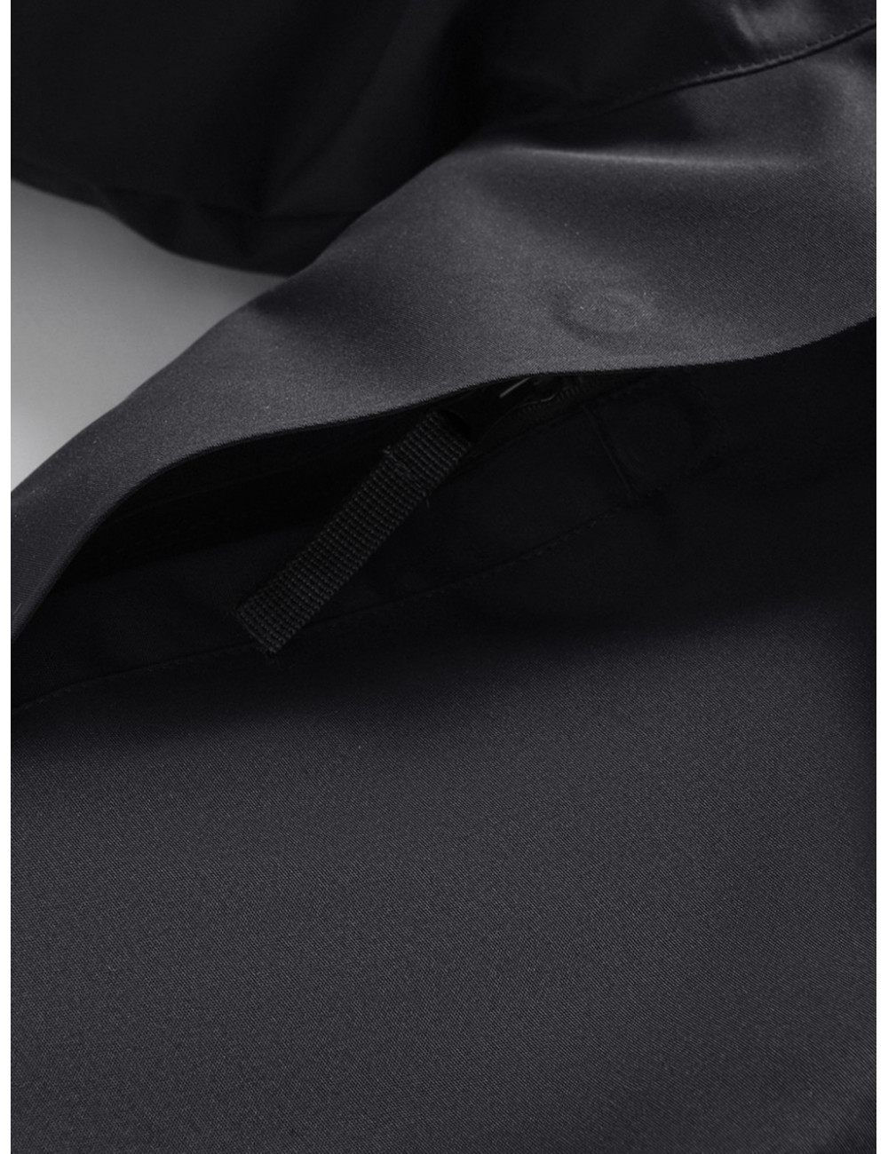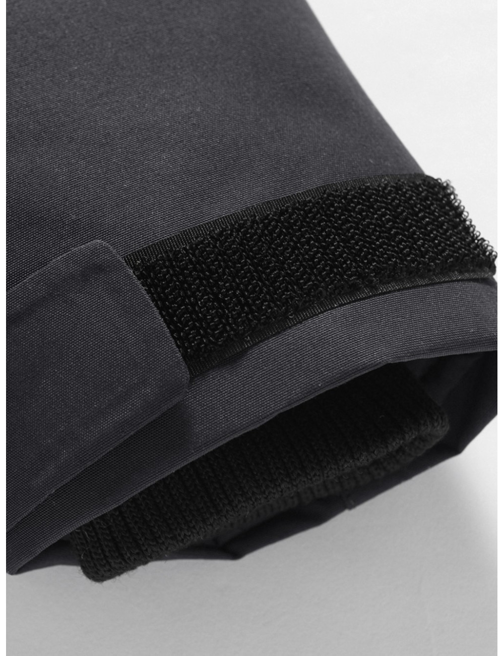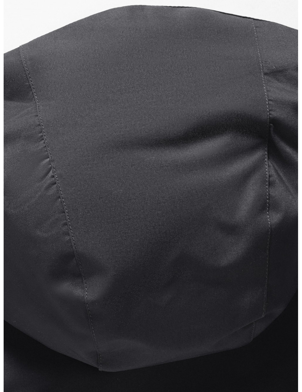 - Регулируемая посадка. Фиксаторы по низу, на капюшоне и по центру (в области талии) позволяют подстроить силуэт и защитить от продувания.