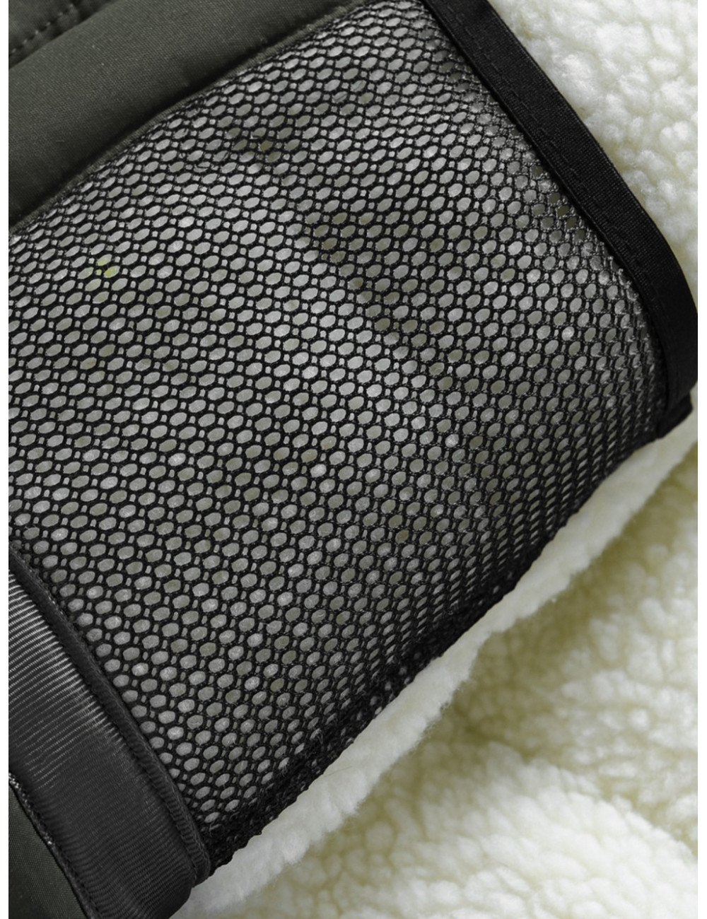 - Фиксаторы на рукавах и трикотажные манжеты удерживают тепло внутри.