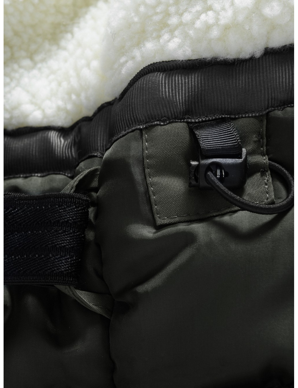 - Внутренние лямки дают возможность носить парку на плечах в помещении — например, в школе или торговом центре.