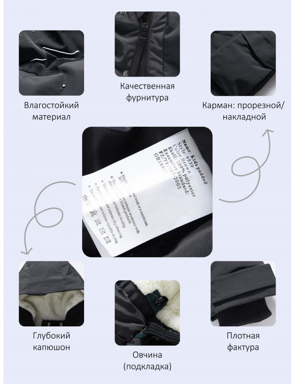 | Особенности модели | водоотталкивающий материал, гипоаллергенный материал, дышащий материал, с начесом, светоотражающие детали, с разрезом |