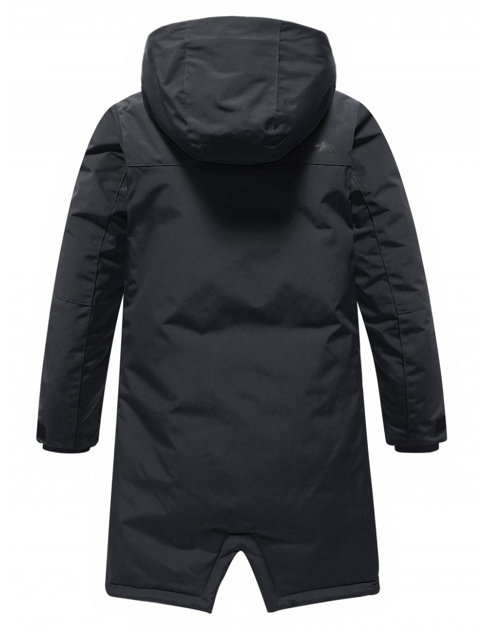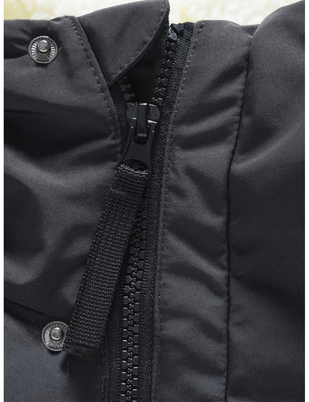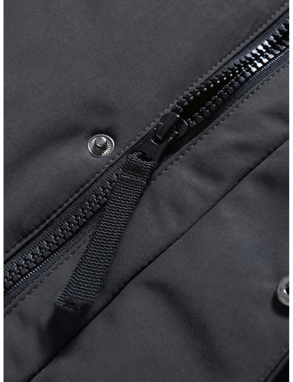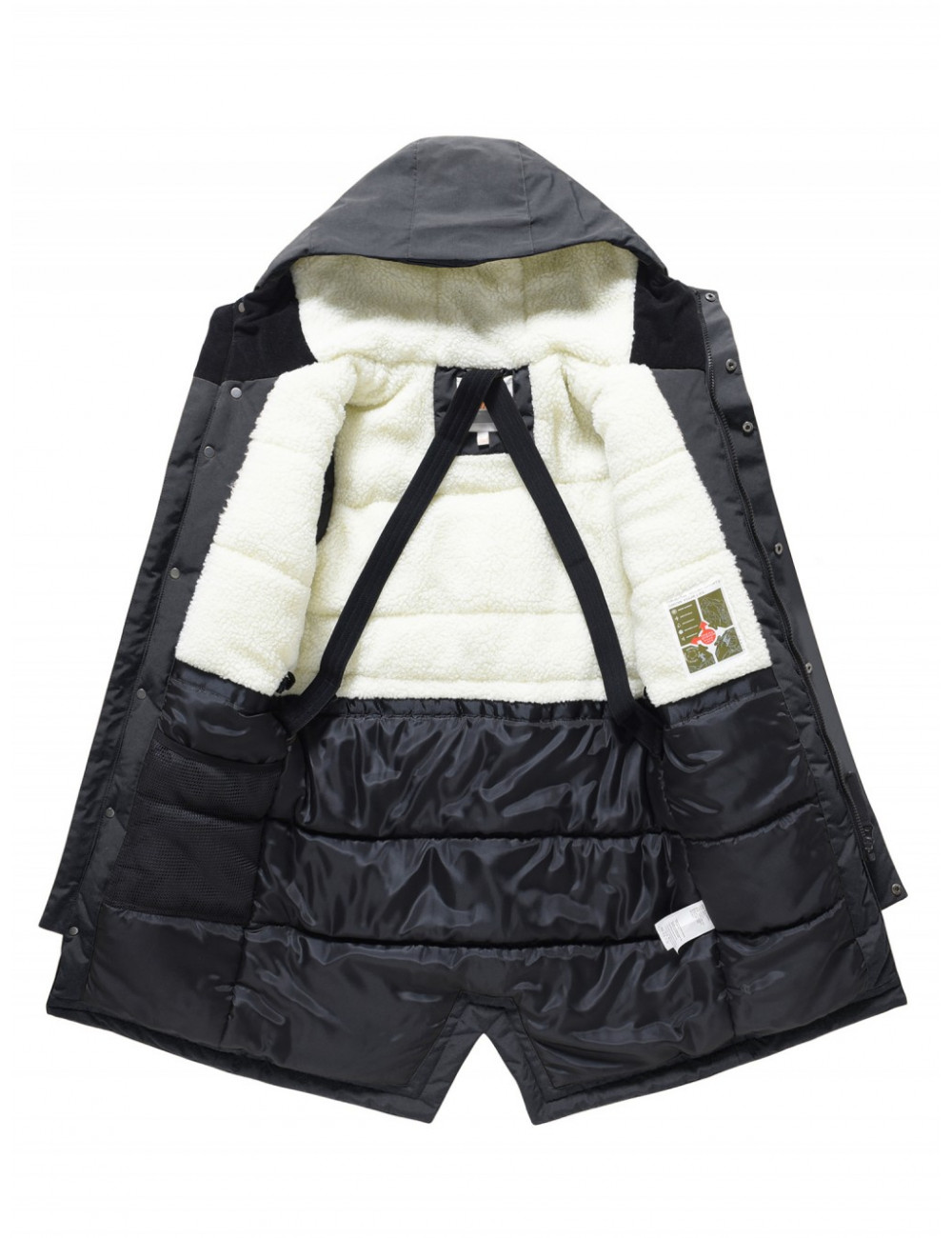 - Двойная молния с клапаном на кнопках надёжно закрывает парку и предотвращает продувание.