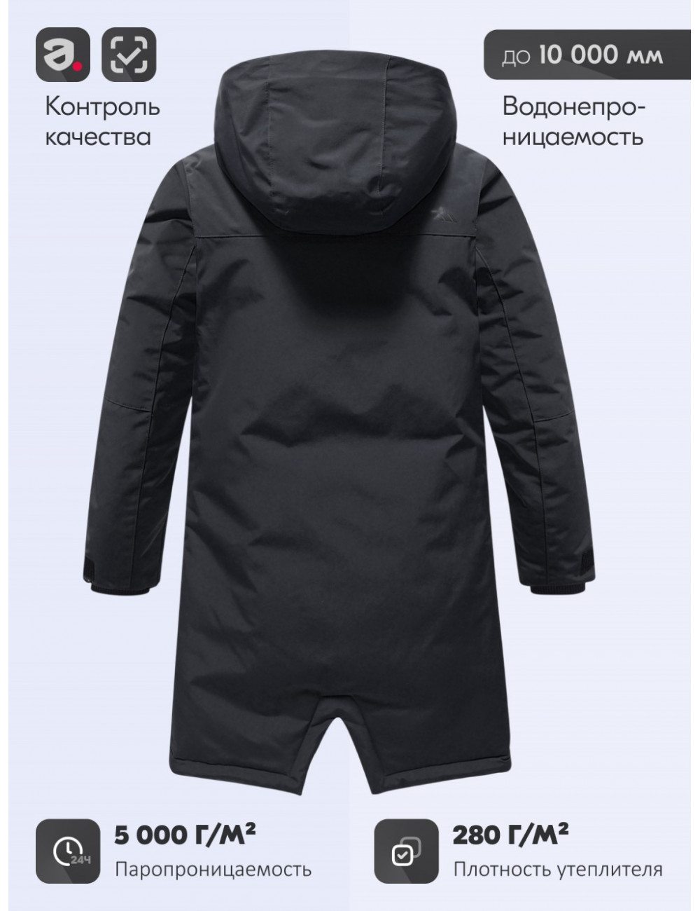 - Износостойкая ткань с водоотталкивающими свойствами защищает от ветра и влаги, сохраняя тепло внутри.