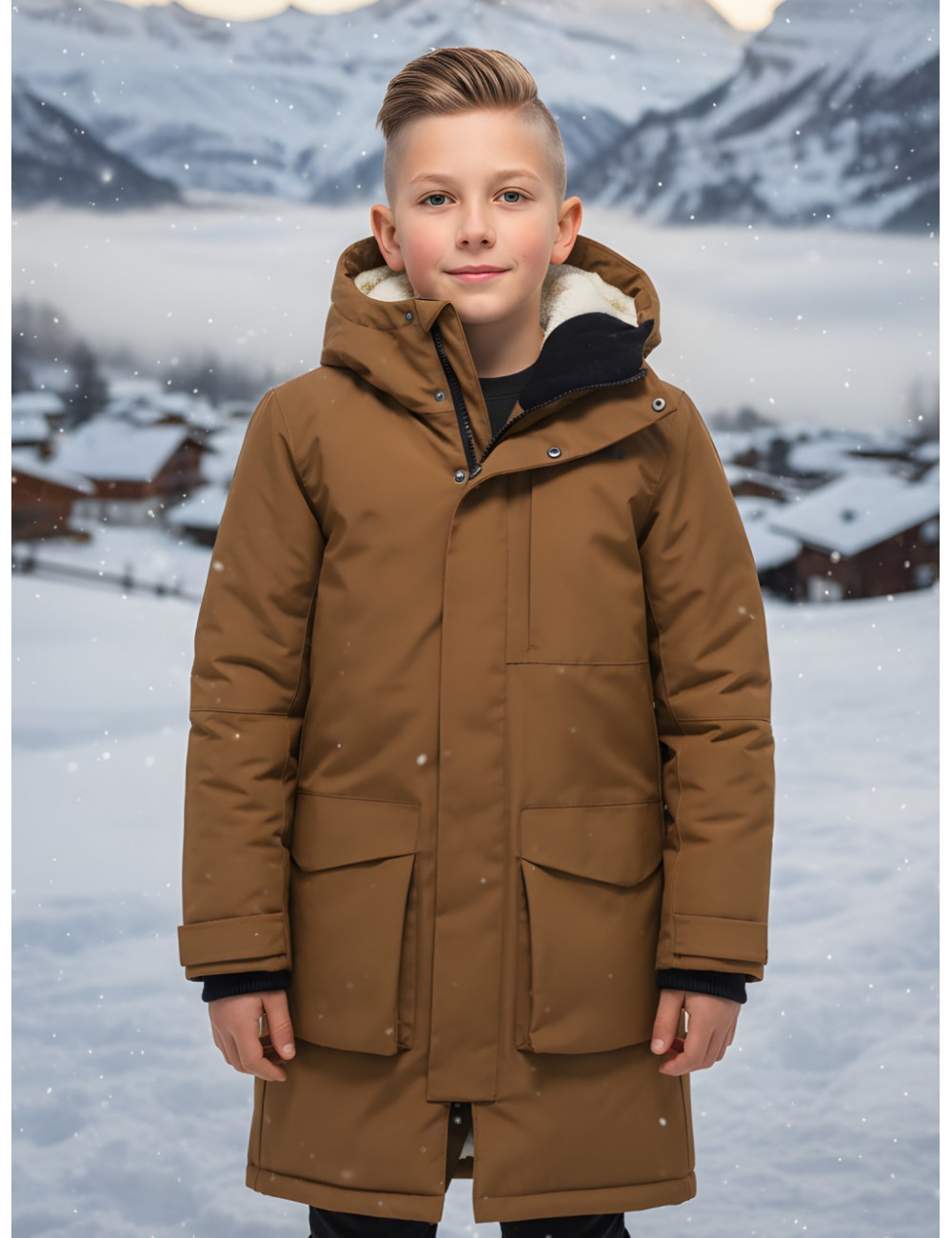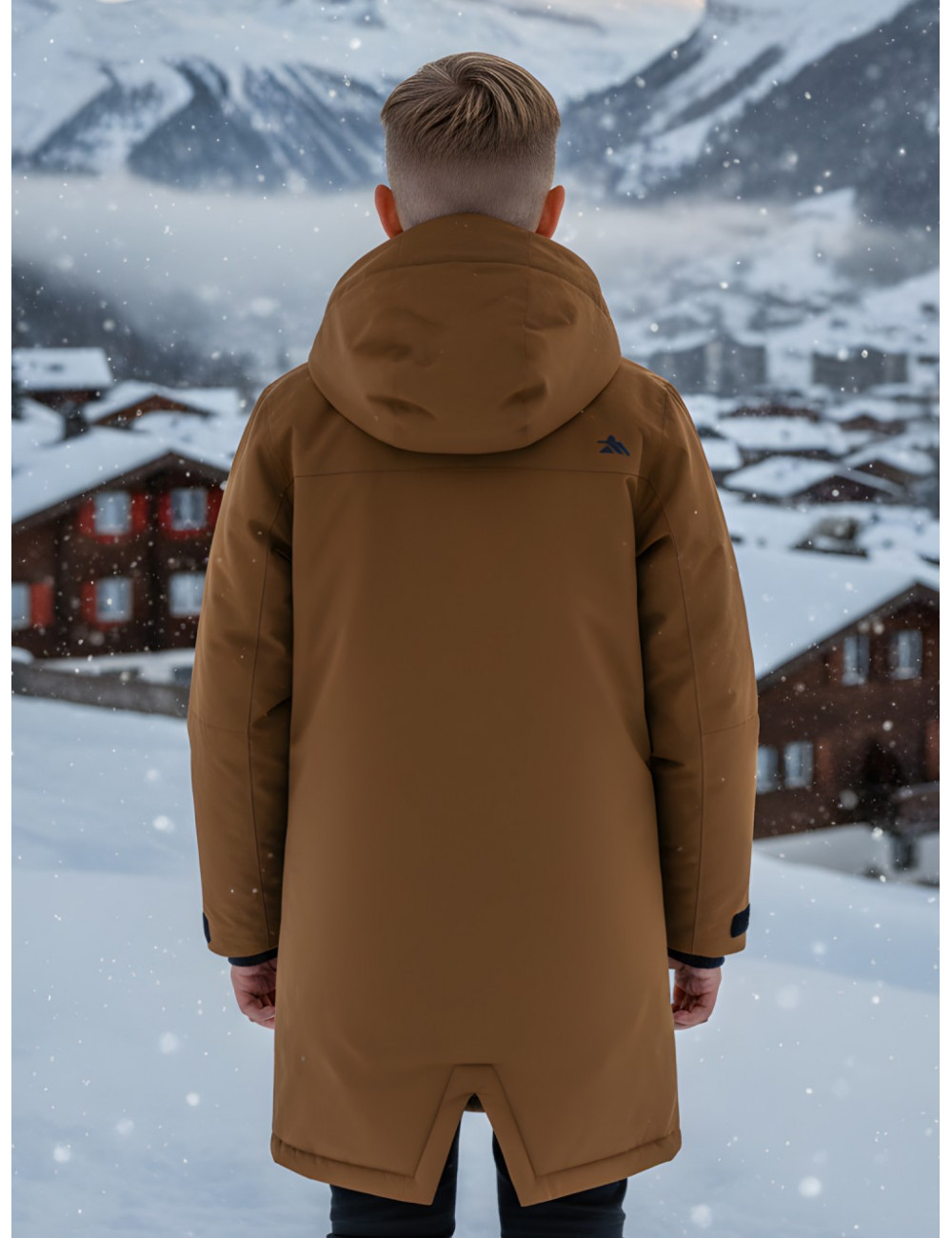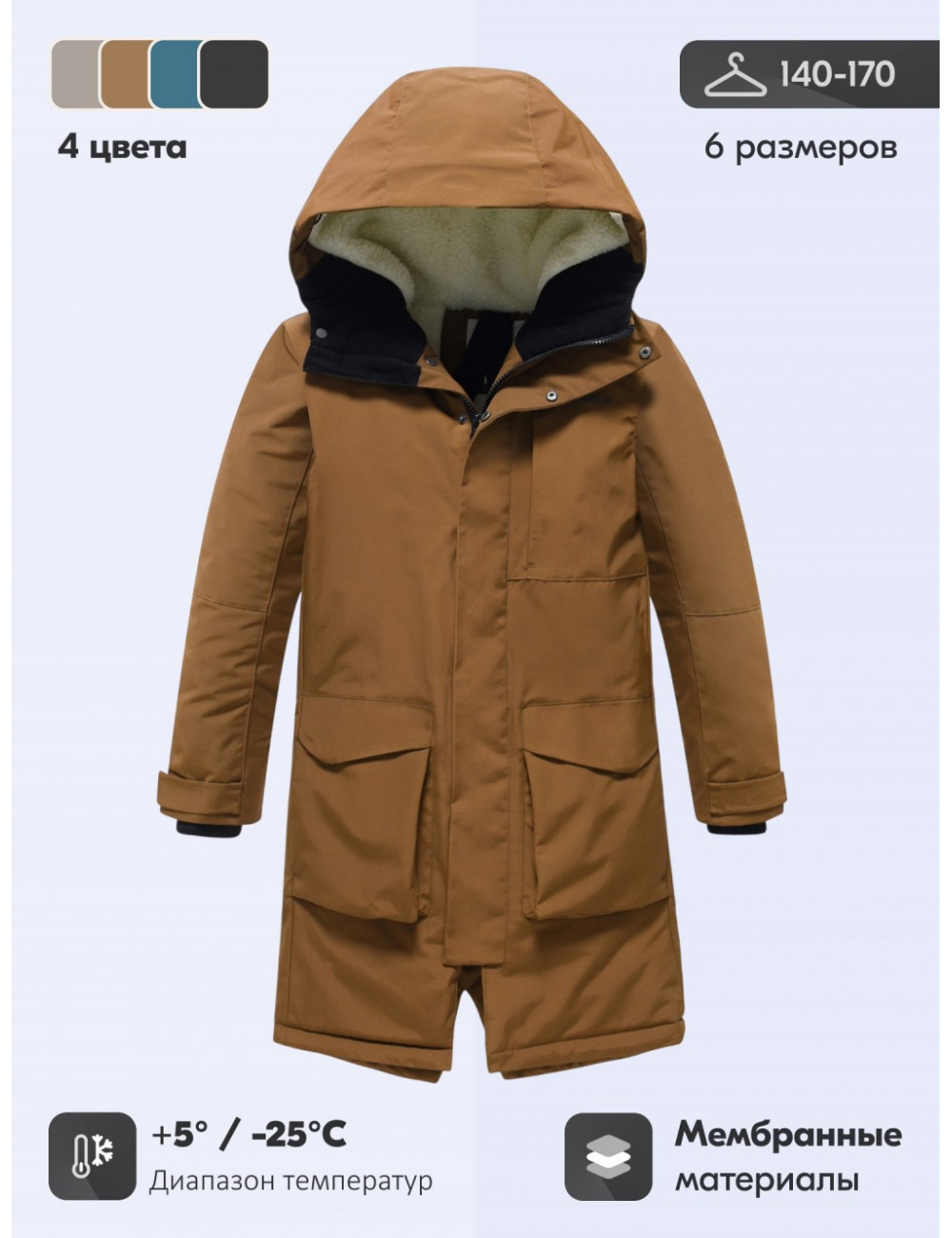 Эта тёплая и практичная парка станет отличным выбором для мальчика-подростка, который ценит комфорт, качество и стиль. Она подойдёт для школы, прогулок, активного отдыха и зимних видов спорта. Доставка по Москве и Московской области Зимняя парка для мальчика с капюшоном, коричневого цвета, подростковая