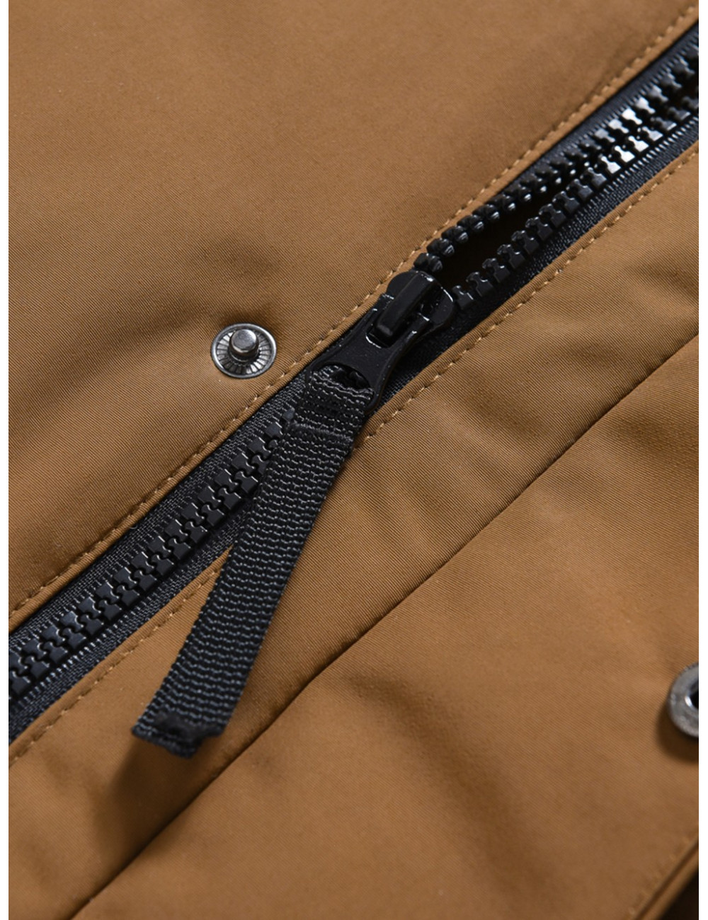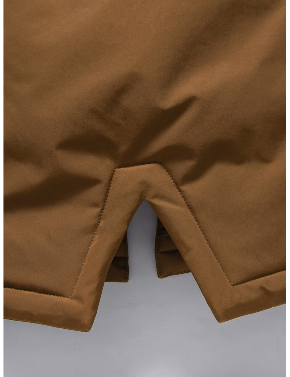 Эта парка представлена в стильных универсальных цветах — коричневом, тёмно-зелёном, чёрном и бежевом.