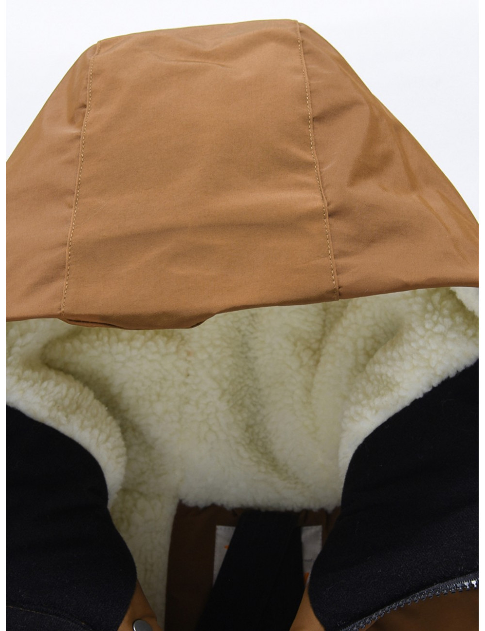 - Регулируемые фиксаторы на рукавах и капюшоне, которые позволяют удерживать тепло и подстраивать посадку под ребёнка.