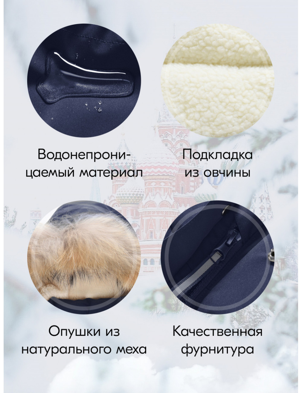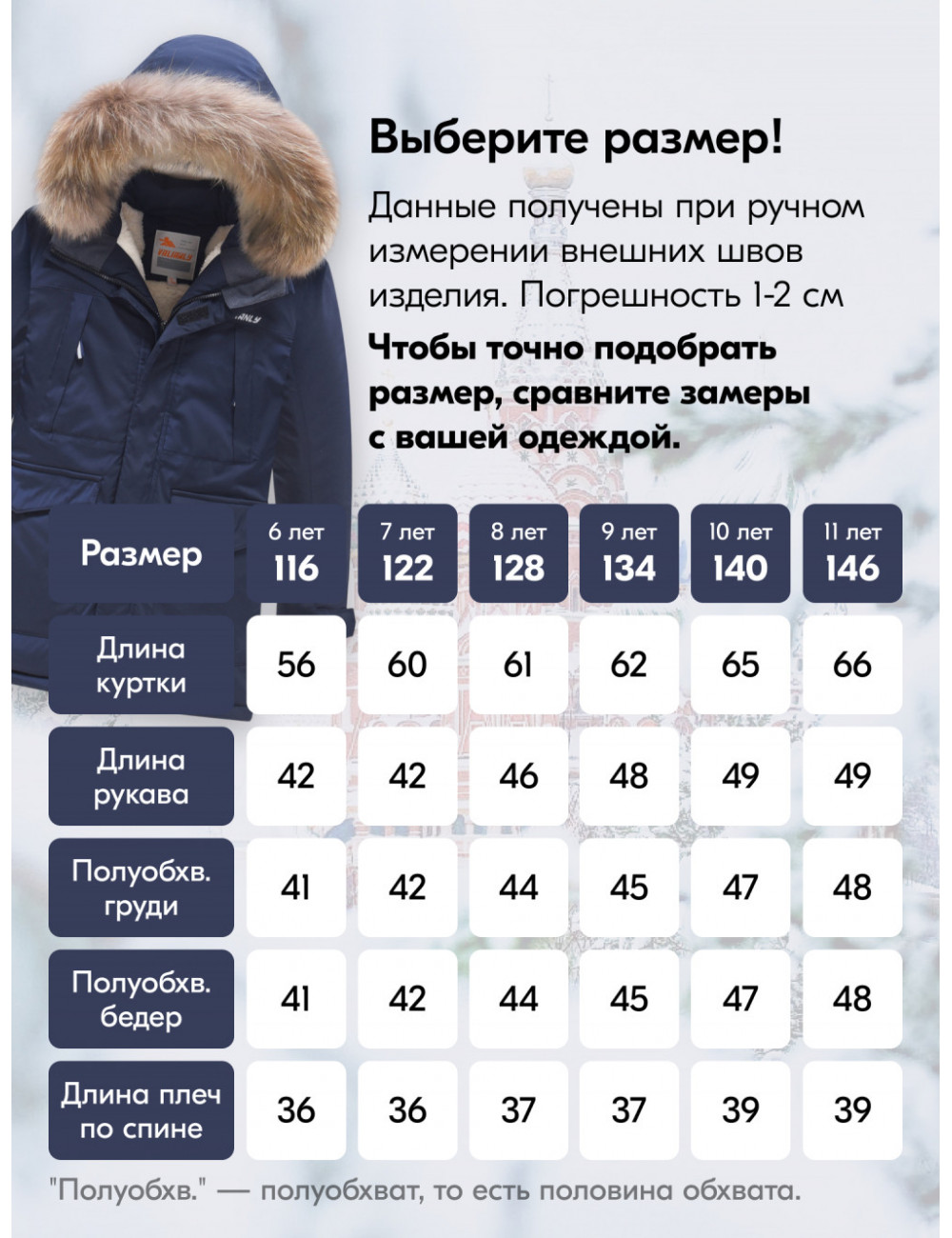 | Декоративные элементы | Мех, Капюшон, Светоотражающие элементы, Съемная опушка |