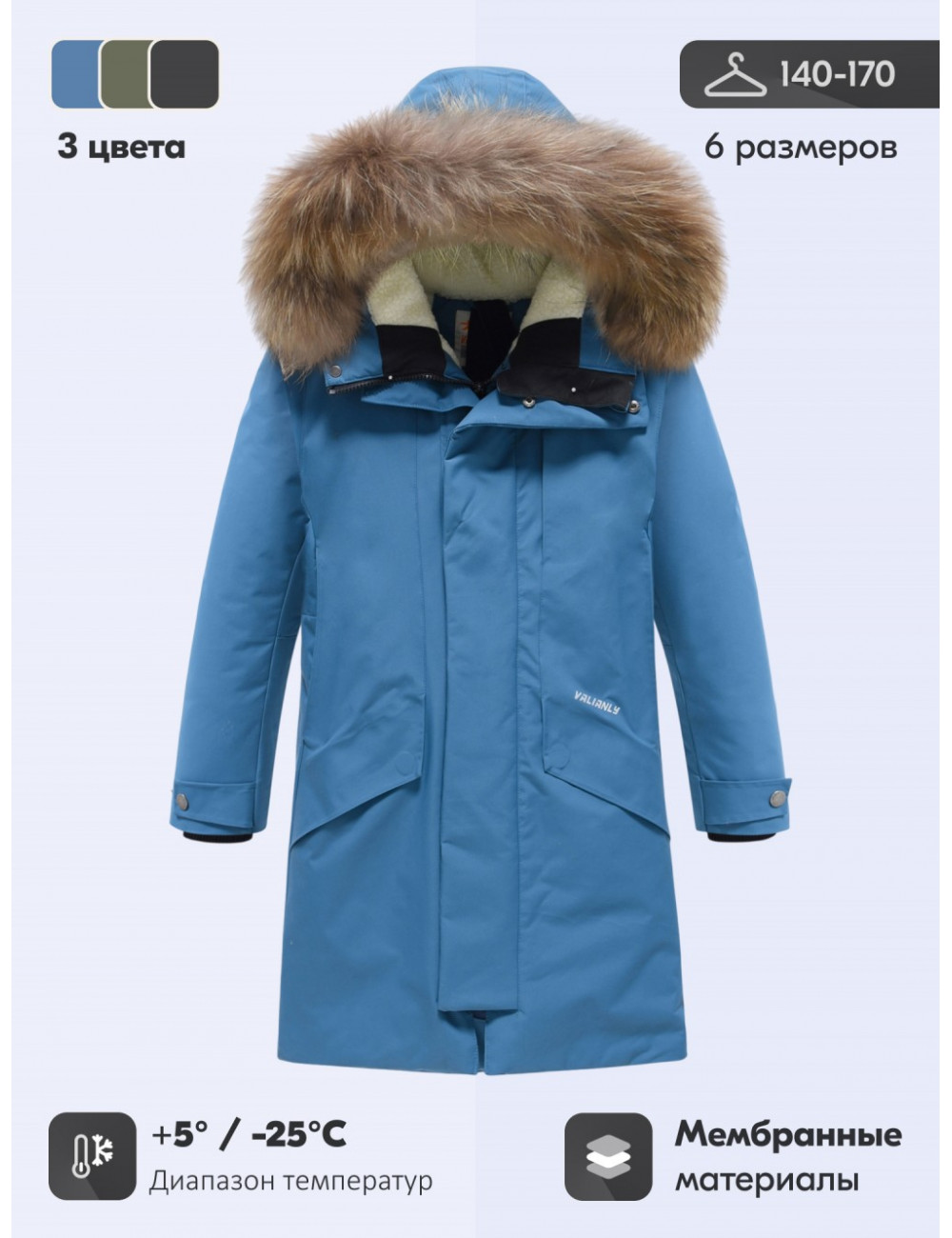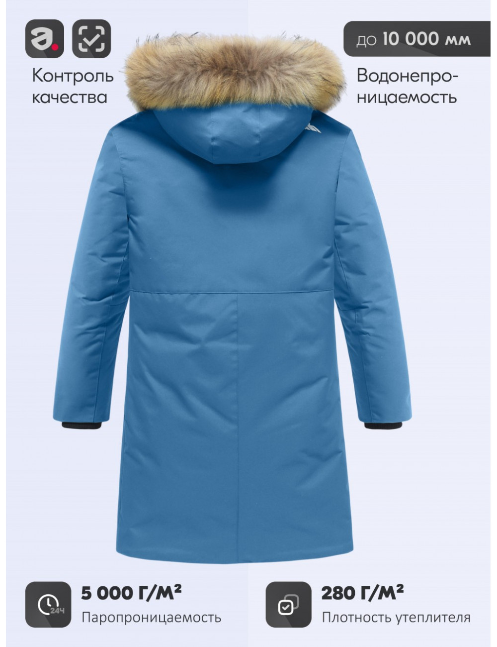 - Свободный крой: удлинённая модель до колена обеспечивает удобство и свободу движений. Парка комфортно сидит как поверх школьной формы, так и в сочетании с повседневной одеждой и спортивной экипировкой, например, с лыжным костюмом или снаряжением для сноуборда.