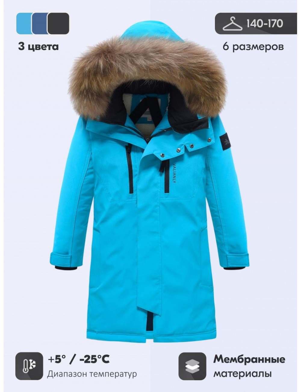 - Универсальность. Парка выполнена в универсальных цветах — синем, голубом и чёрном — и подойдёт как для школы, так и для повседневных прогулок.