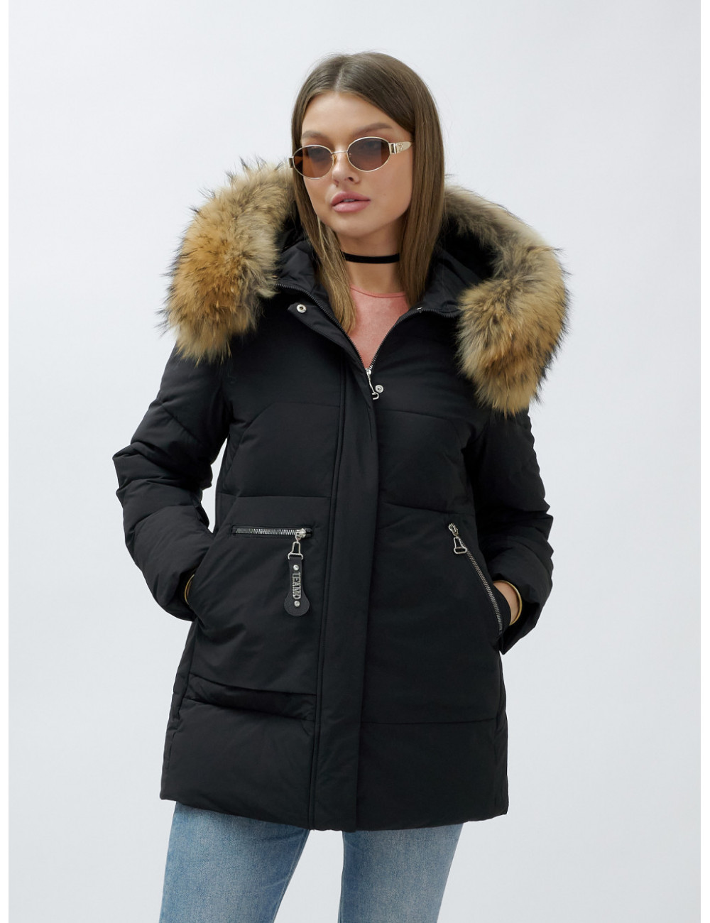Зимняя женская куртка до бедра премиум-класса с натуральной опушкой енот от Ketsi