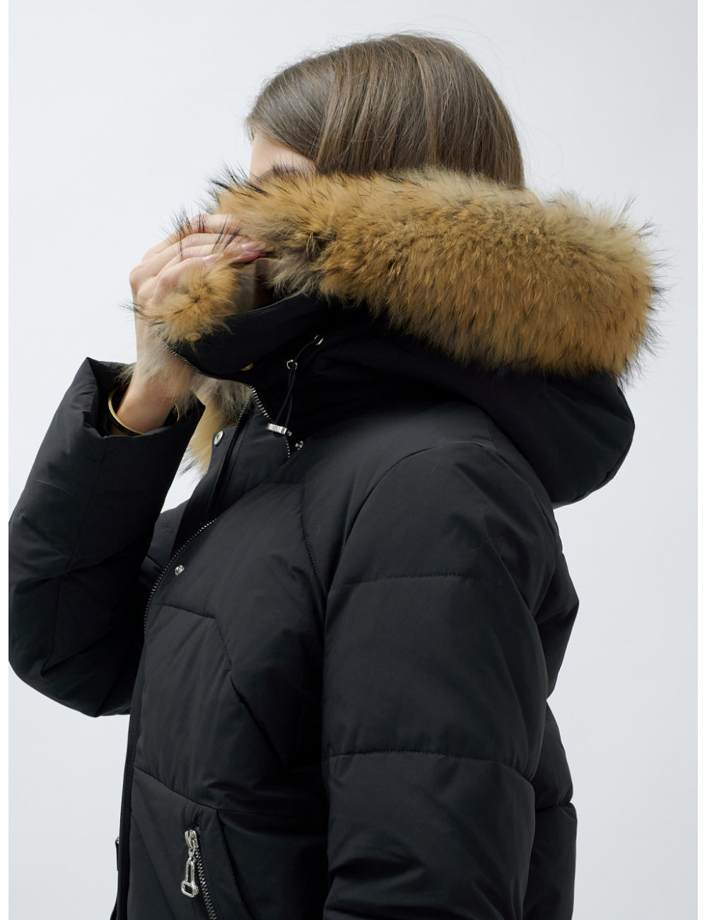 Для сохранения формы и материала куртки рекомендуется химчистка. Это поможет удалить загрязнения, не повредив ткань. При необходимости можно использовать сухую чистку, но обязательно следуйте указаниям на ярлыке. Доставка по Москве и Московской области Пуховик женский зимний с мехом енота премиум-класса, чёрный.
