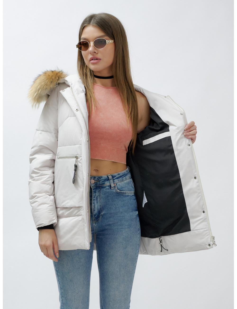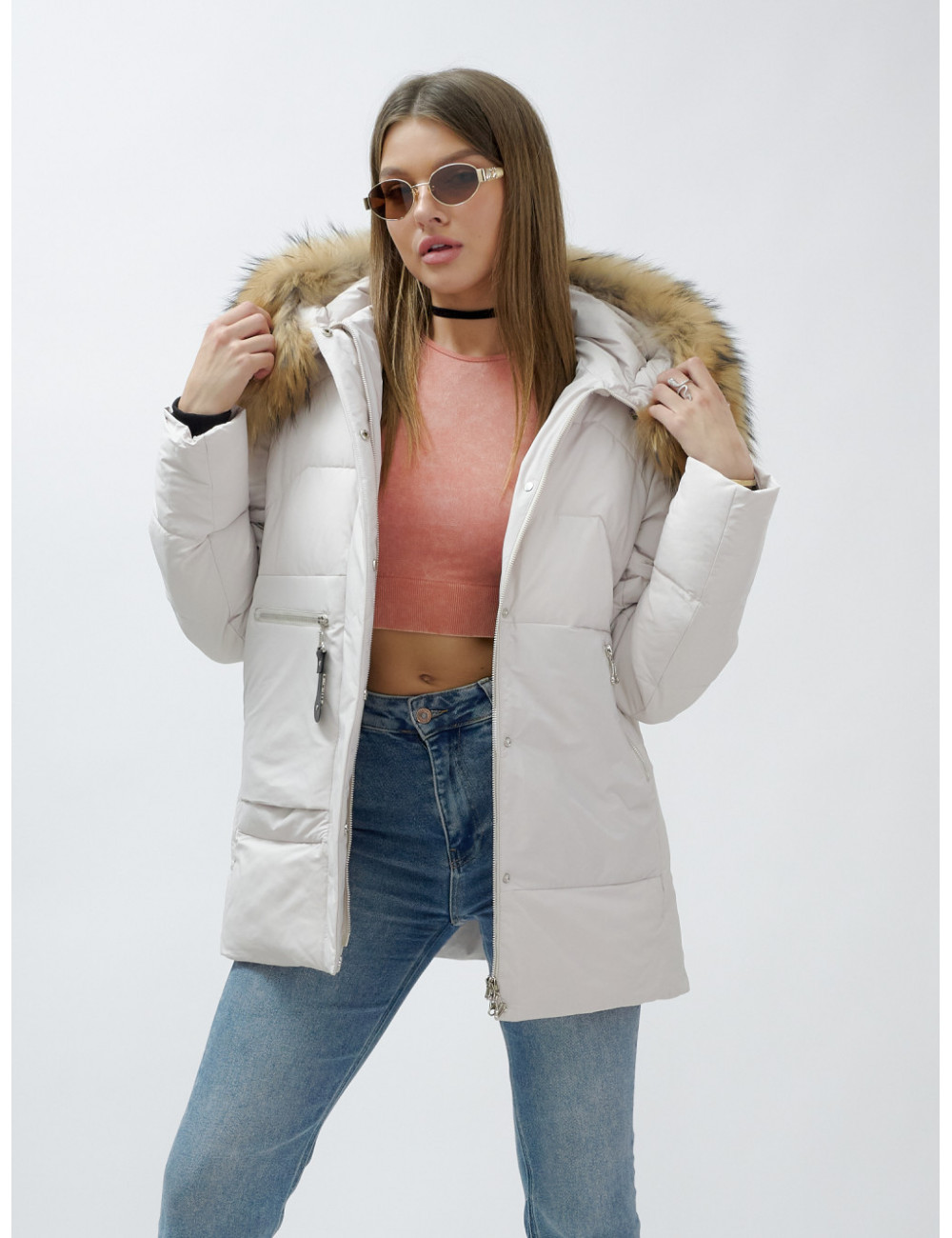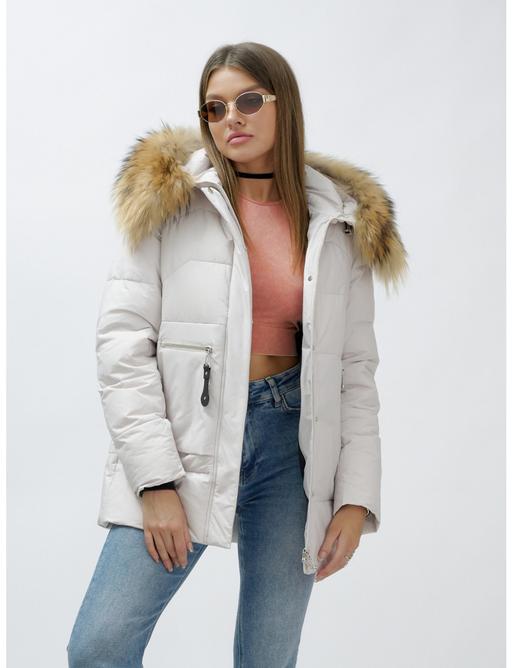 Не упустите возможность добавить этот премиум-элемент в свой зимний гардероб от Ketsi! Доставка по Москве и Московской области Пуховик женский зимний с мехом енота премиум, бежевый
