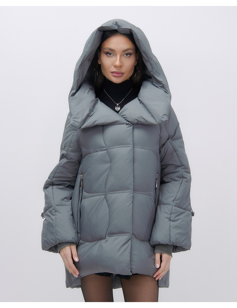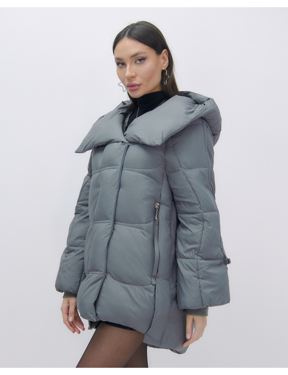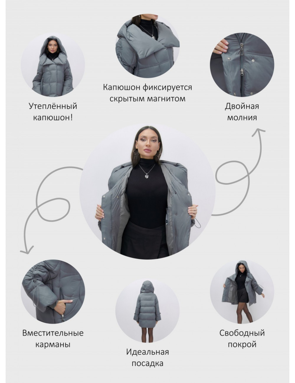 Состав из 100% полиэстера и синтепона гарантирует сохранение тепла в диапазоне температур от +5 °C до -20 °C. Доставка по Москве и Московской области Женский зимний пуховик с капюшоном, тёмно-серый.