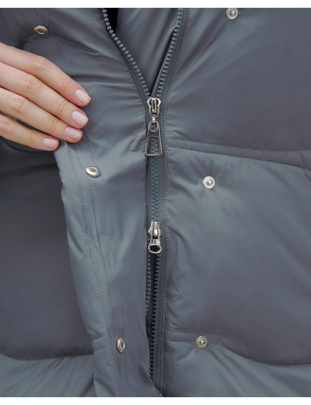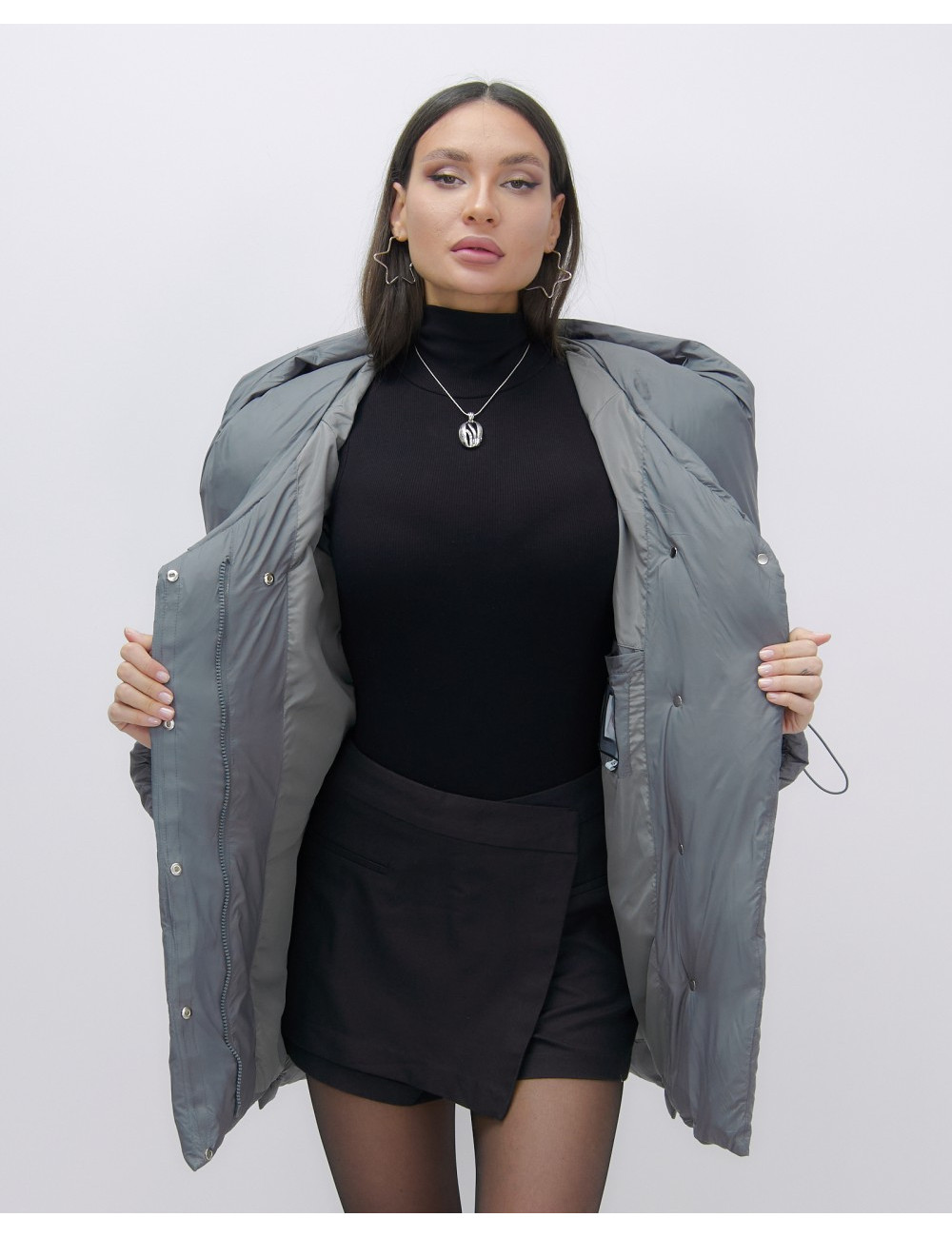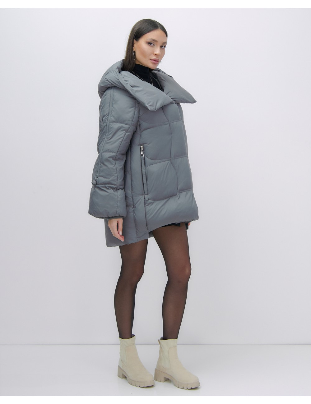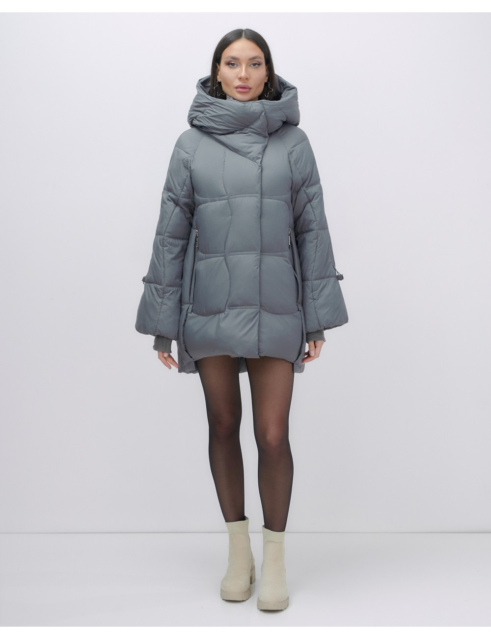 Состав из 100% полиэстера и синтепона гарантирует сохранение тепла в диапазоне температур от +5 °C до -20 °C. Доставка по Москве и Московской области Женский зимний пуховик с капюшоном, тёмно-серый.