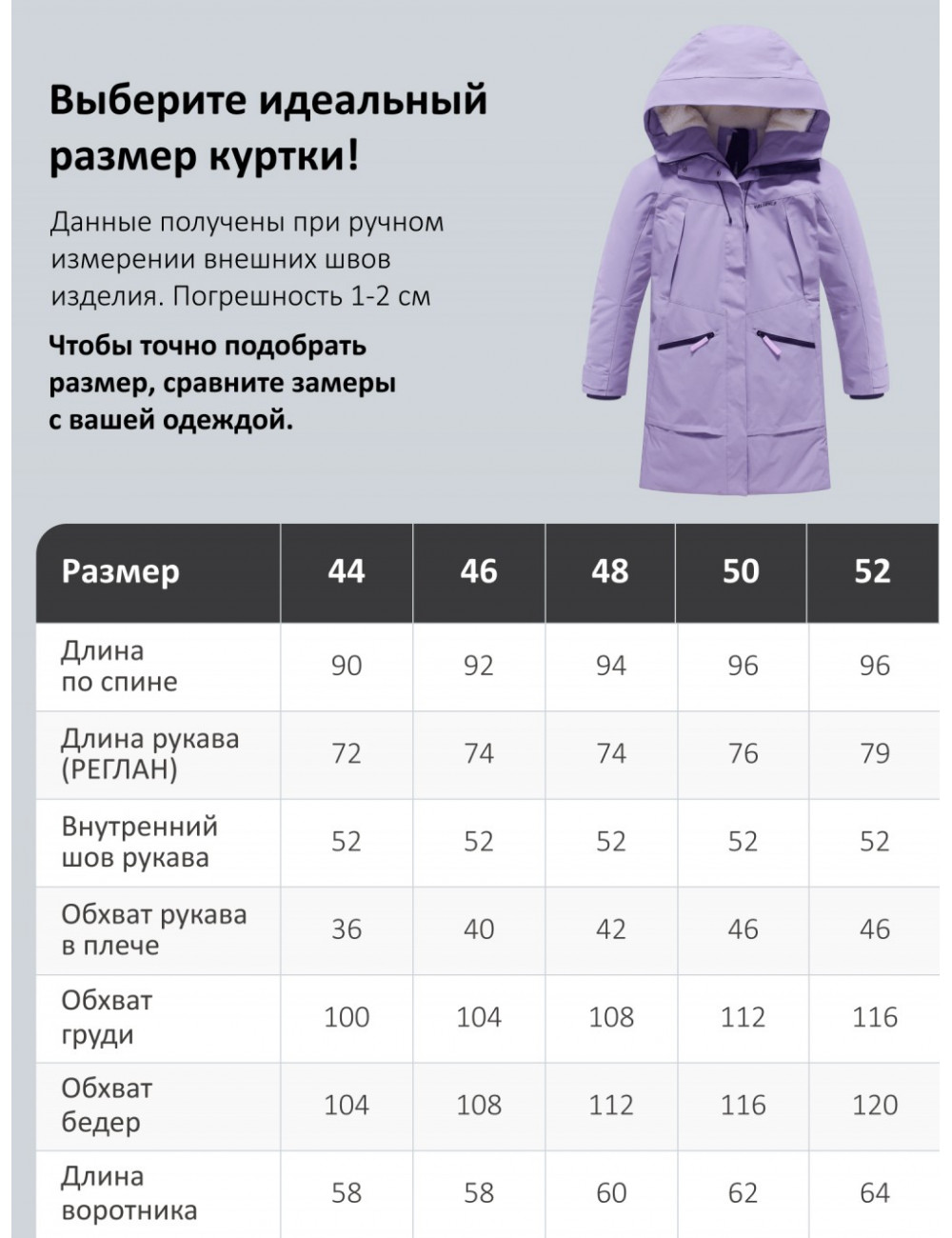 | Фиксаторы | На рукавах, по середине, на капюшоне, по низу |